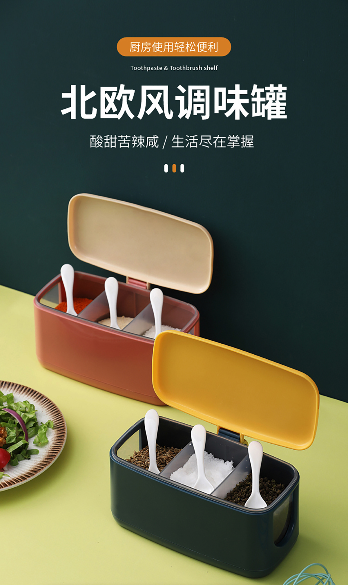 莫蘭迪雙層/手提式(單格/兩格/大兩格/大三格)調(diào)味盒