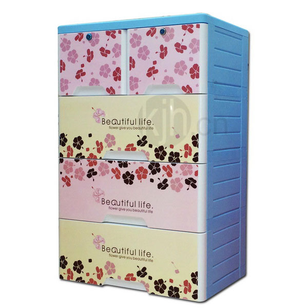 四層整理柜-帶鎖(富貴色彩花)