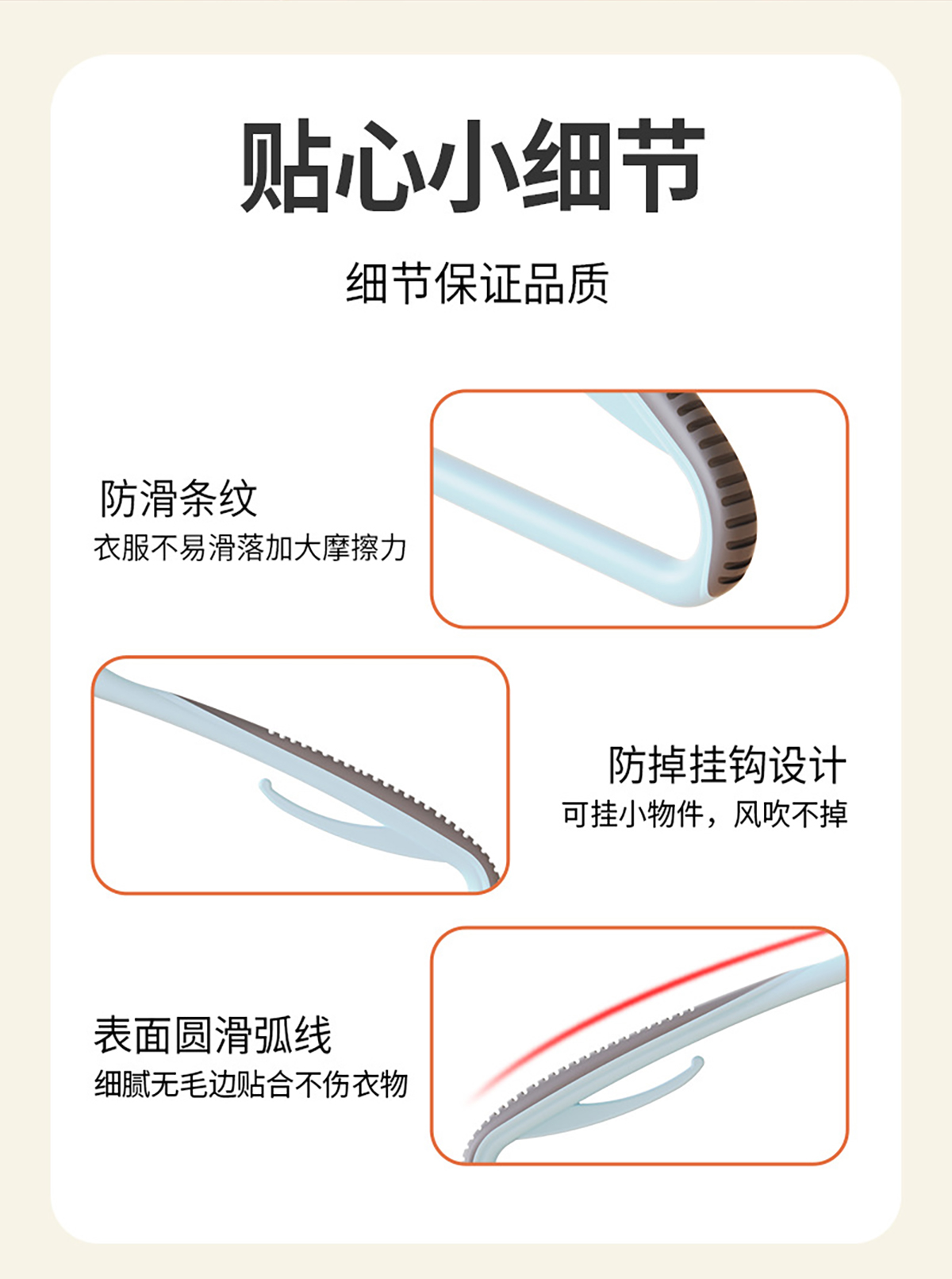 40cm/44cm無痕防滑衣架(5個裝)