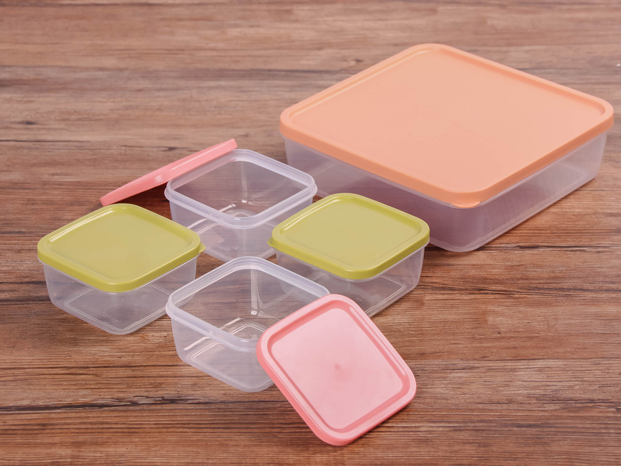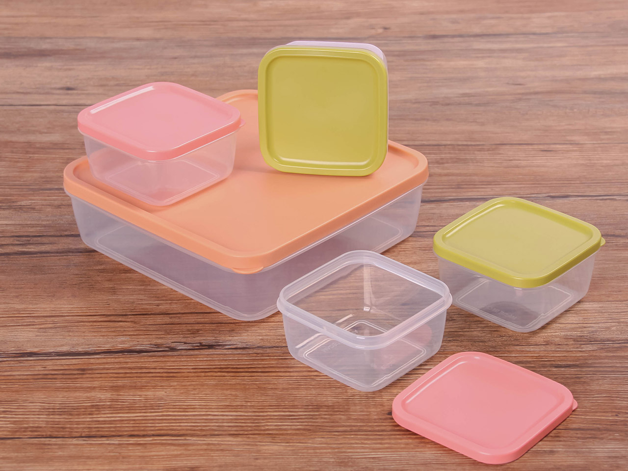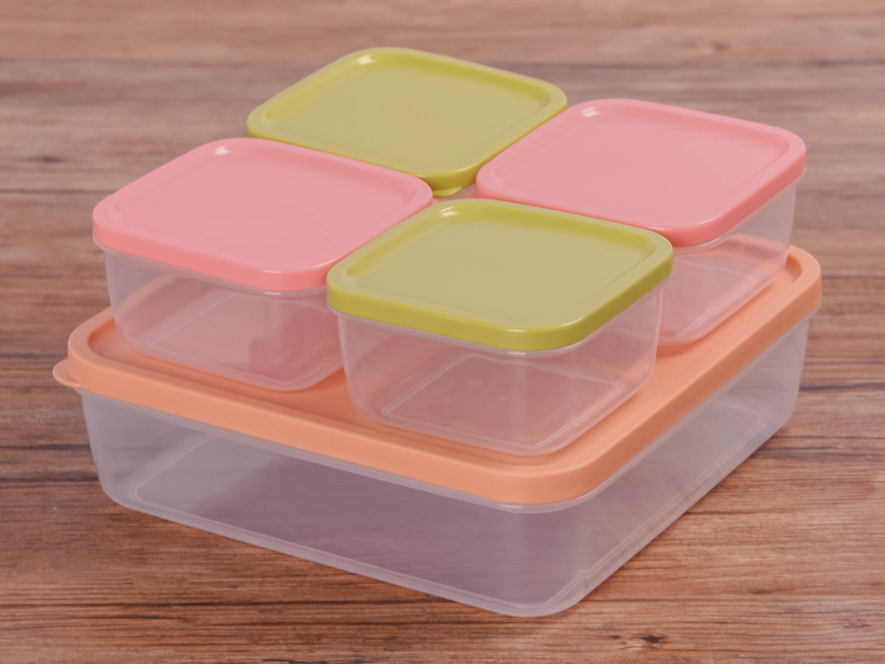得力熊正方5件套疊疊保鮮盒(混色)