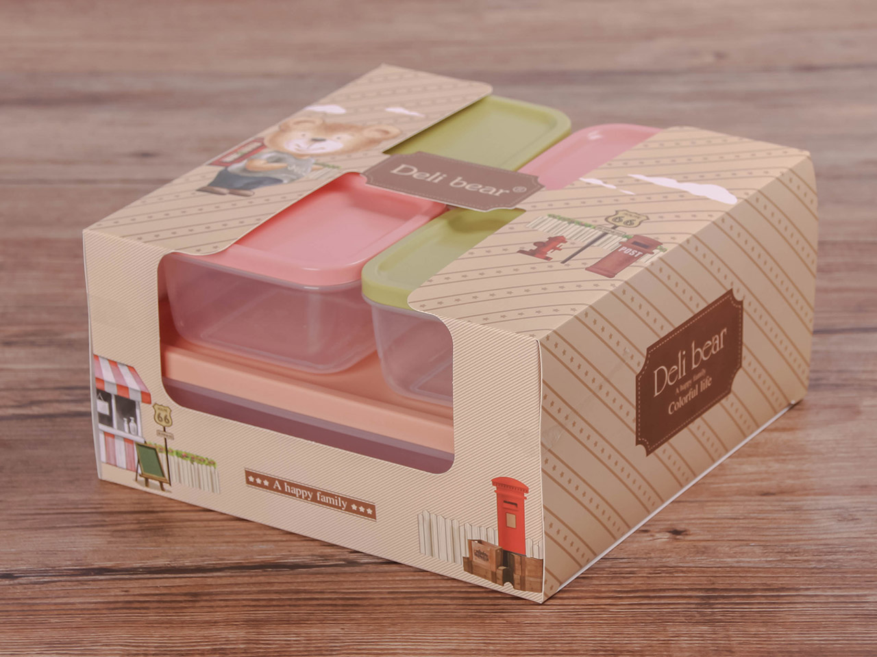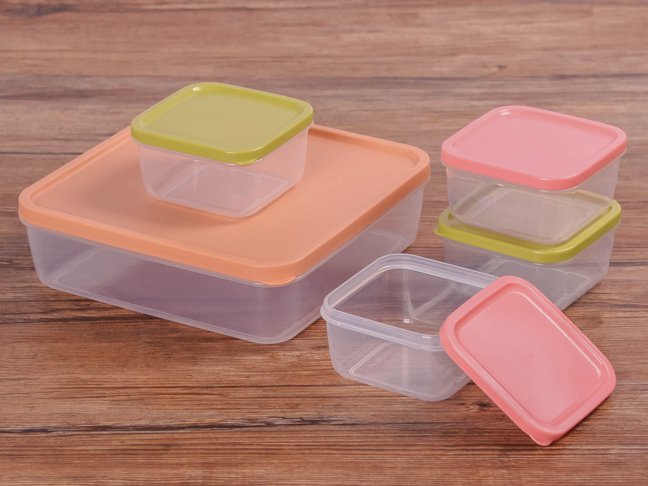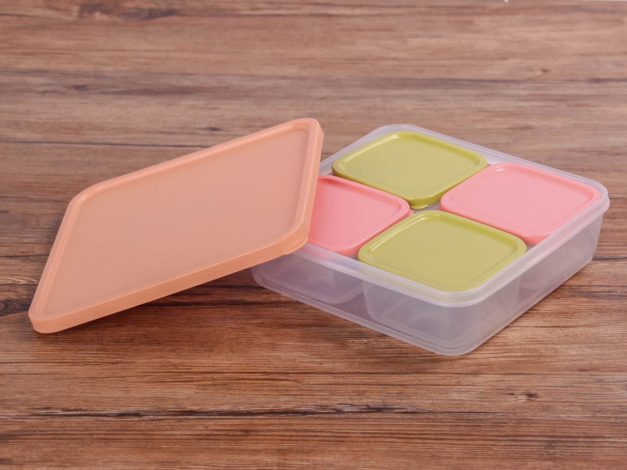 得力熊正方5件套疊疊保鮮盒(混色)