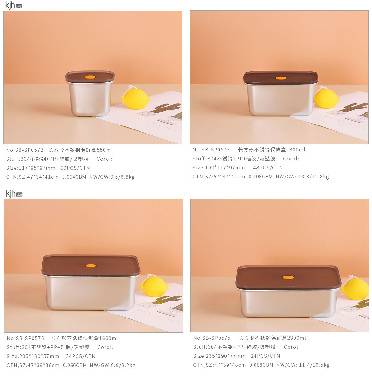 長方形不銹鋼保鮮盒550ml/1300ml/1600ml/2300ml/2900ml