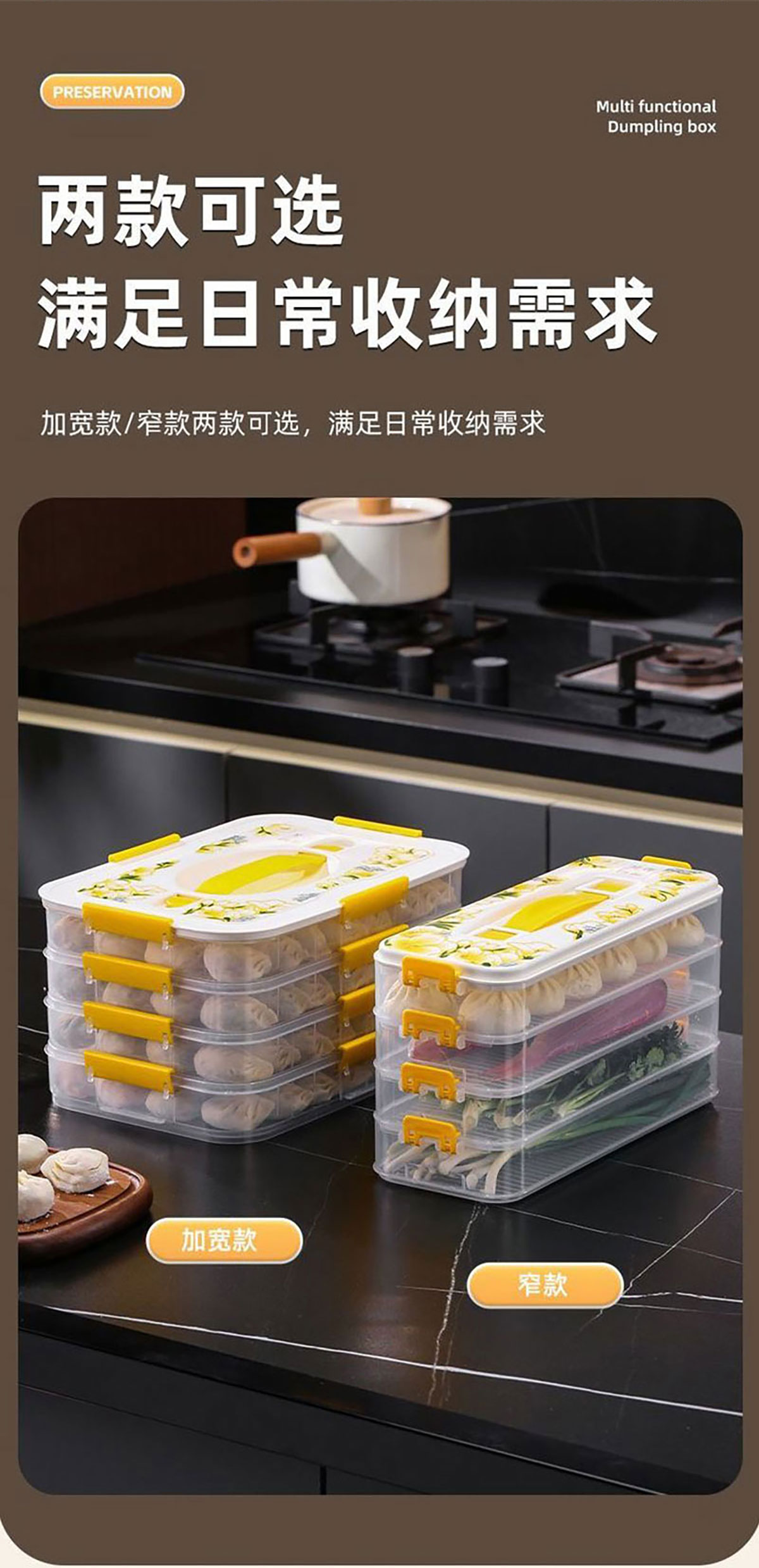 印花手提餃子收納盒(單層/2層/3層/4層) 窄款/寬款