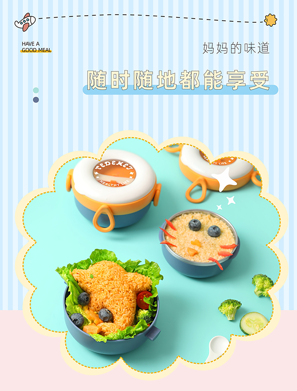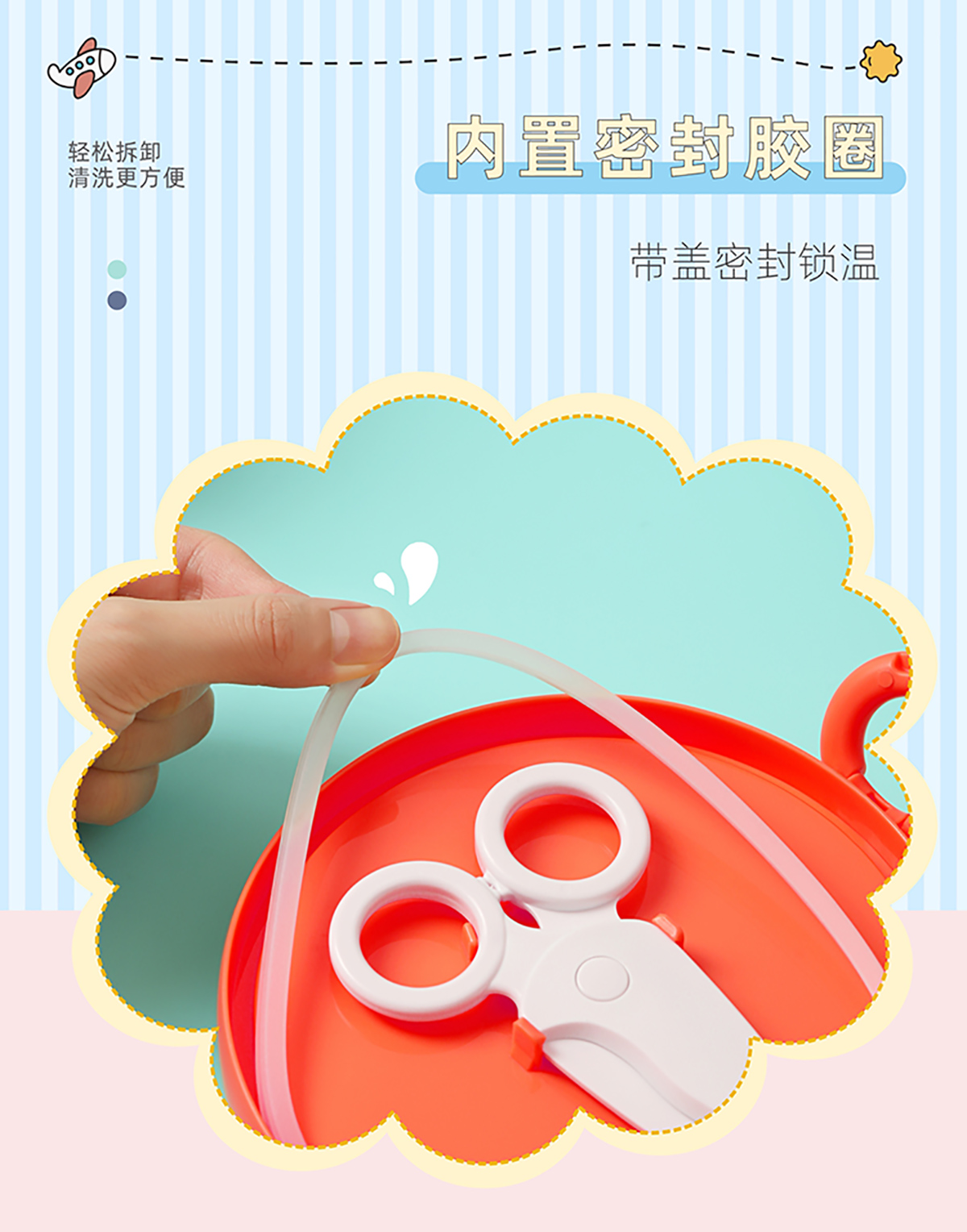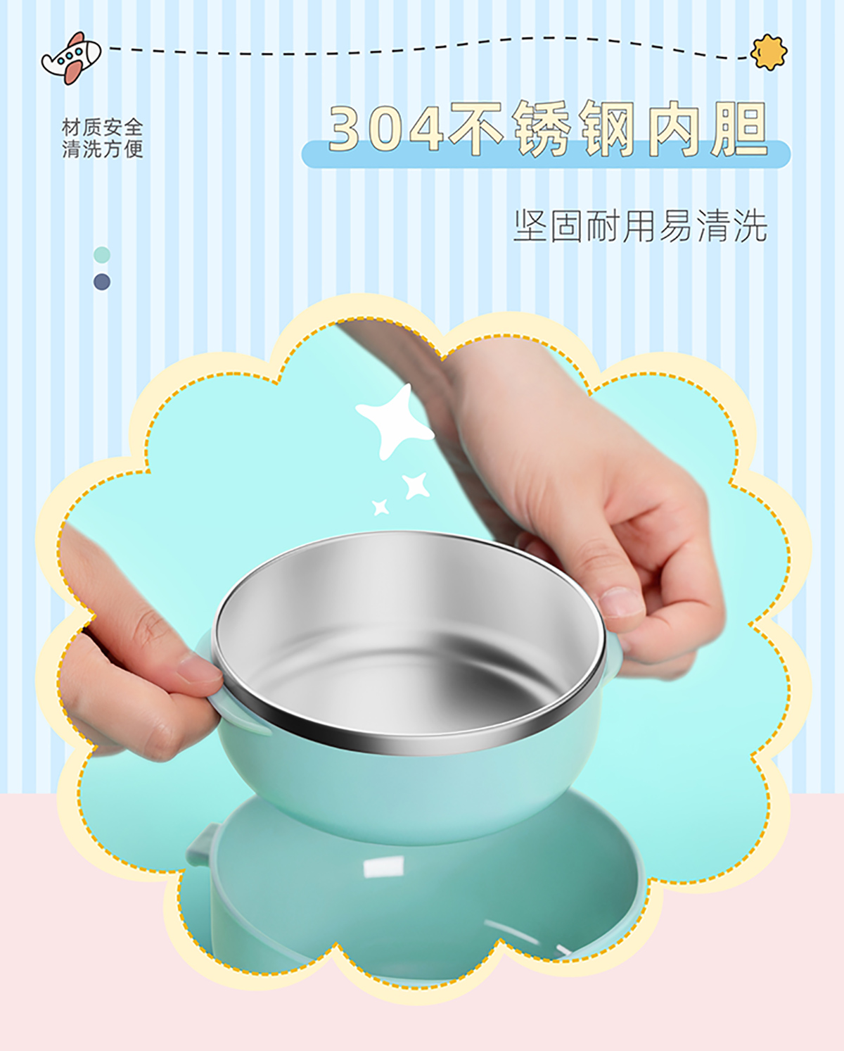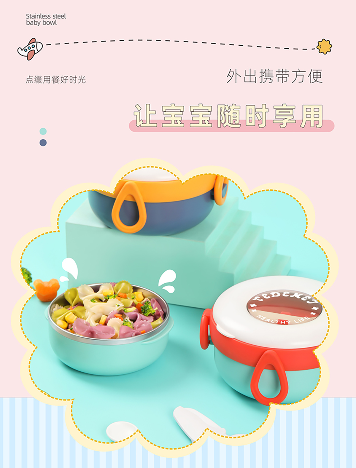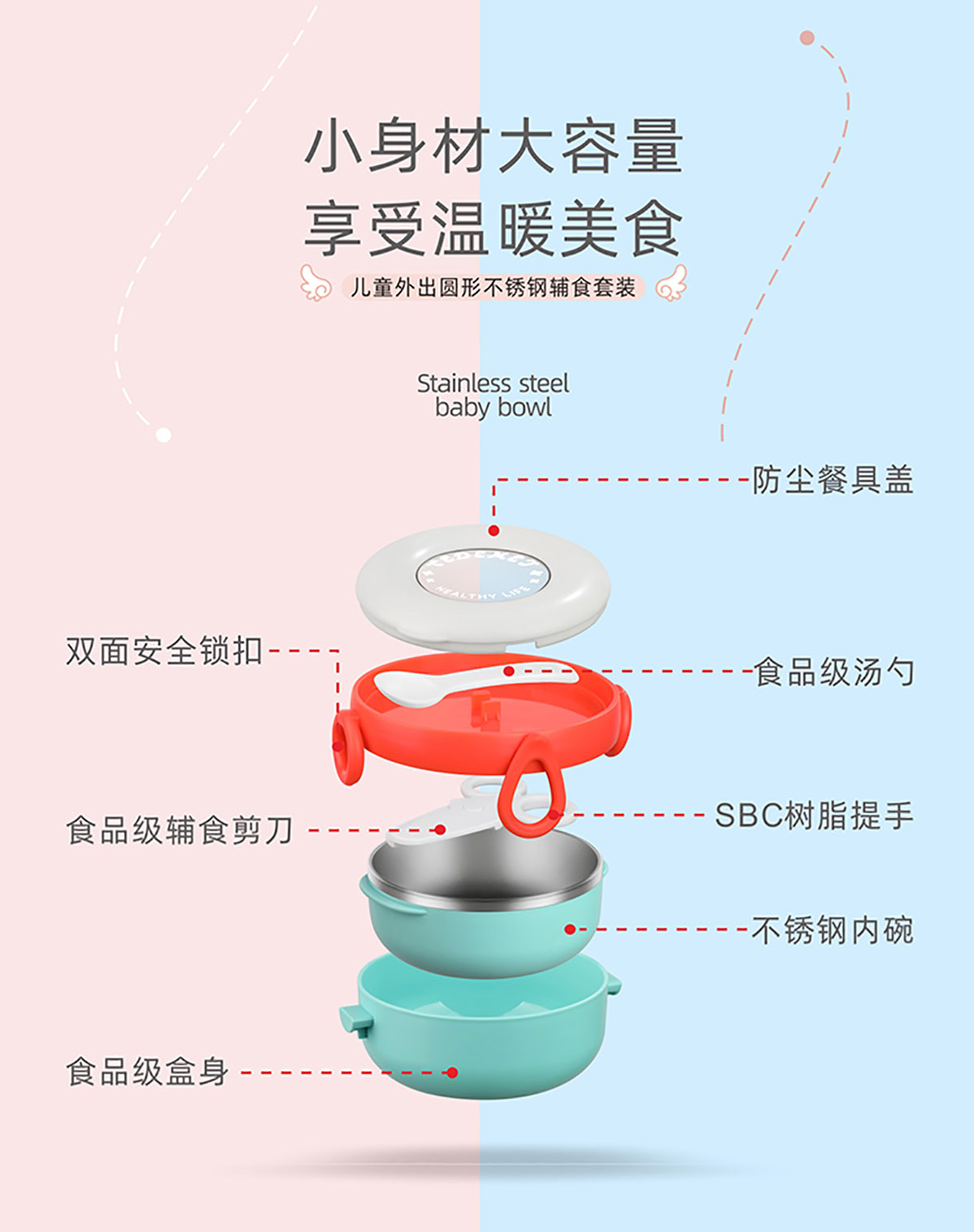 兒童外帶圓形不銹鋼輔食套裝