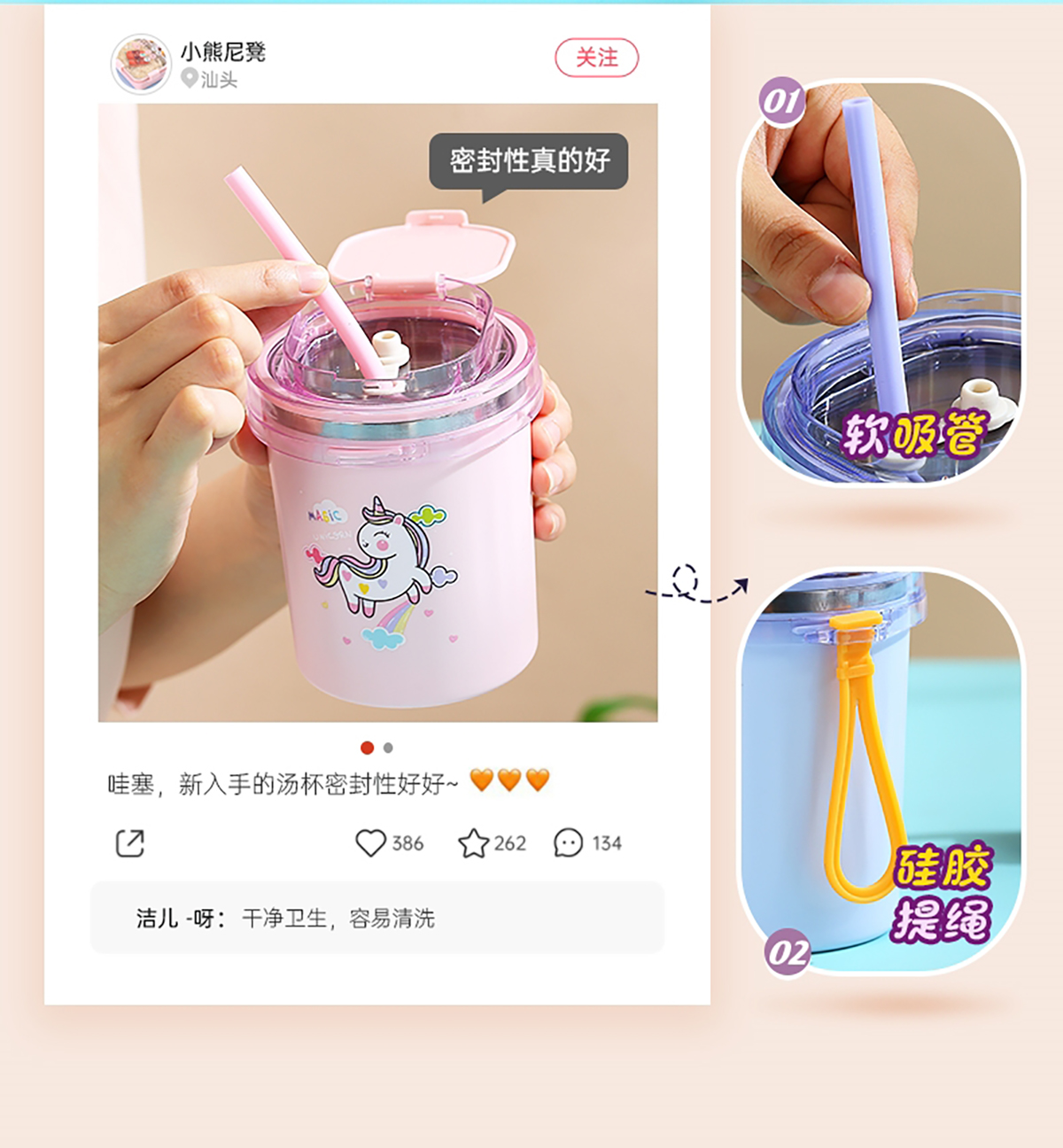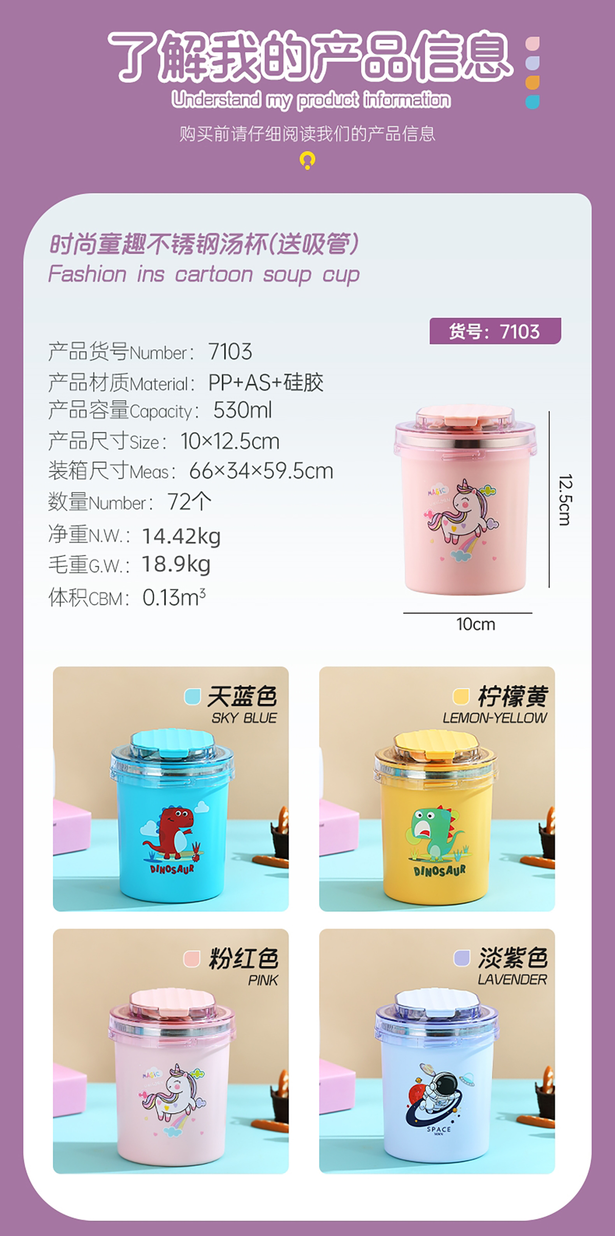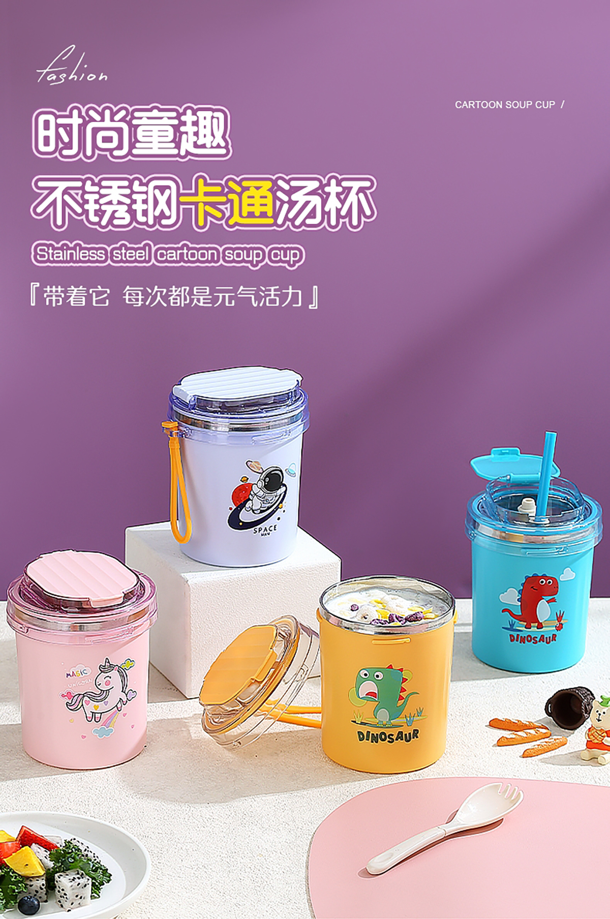時(shí)尚童趣湯杯(530ml)+送吸管