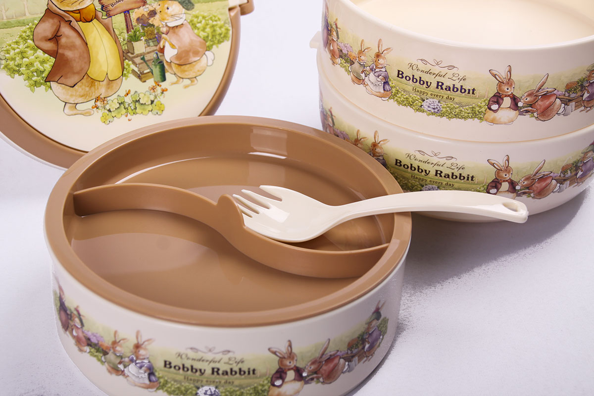 波比提手圓形三層餐盒