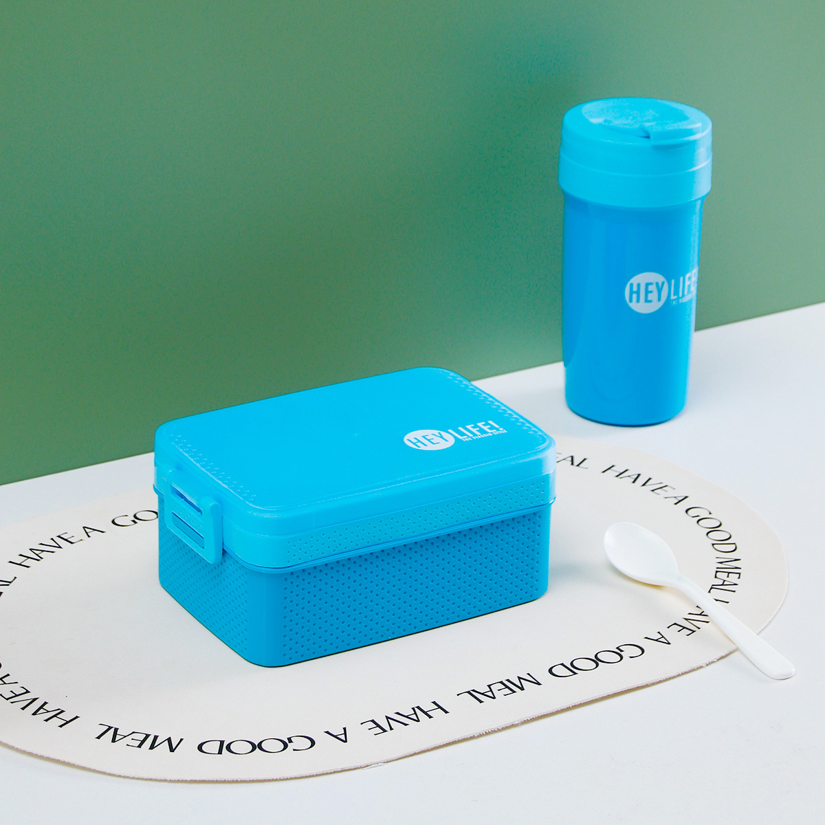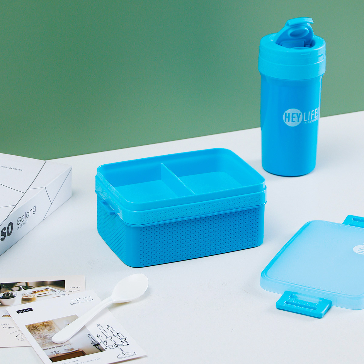 新彩雙層分格餐盒+水杯套裝(1000+500ml)