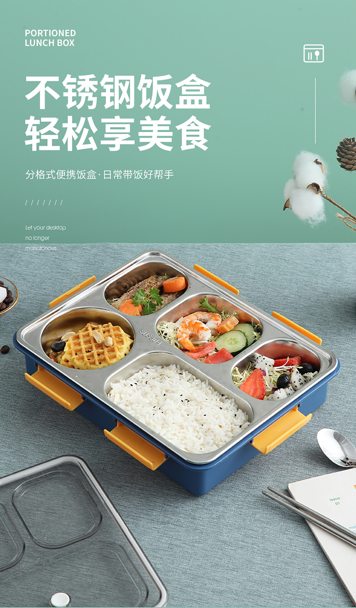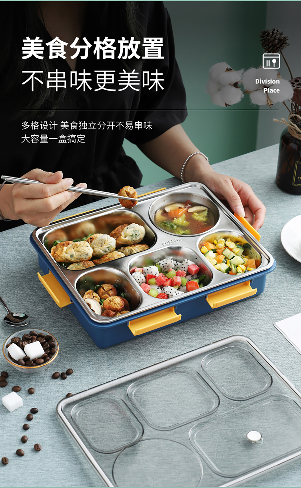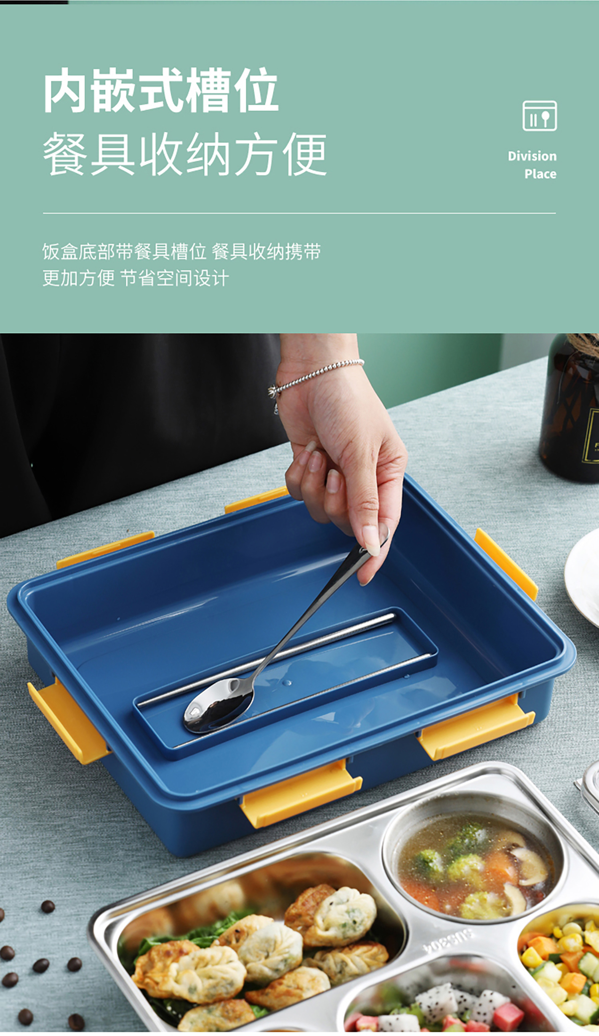 304不銹鋼飯盒(五格1100ml/五格帶不銹鋼湯碗1280ml)