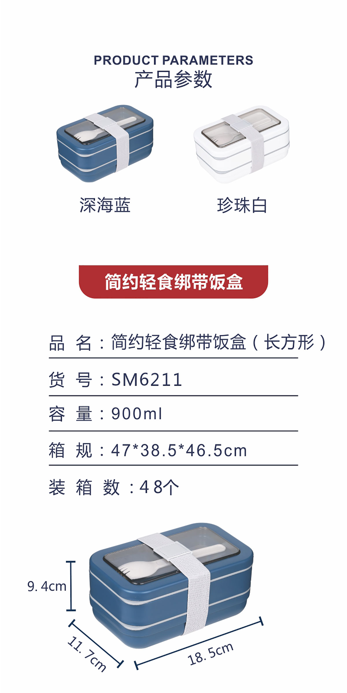 簡(jiǎn)約輕食綁帶飯盒 (長(zhǎng)方形)900ml 22年新色
