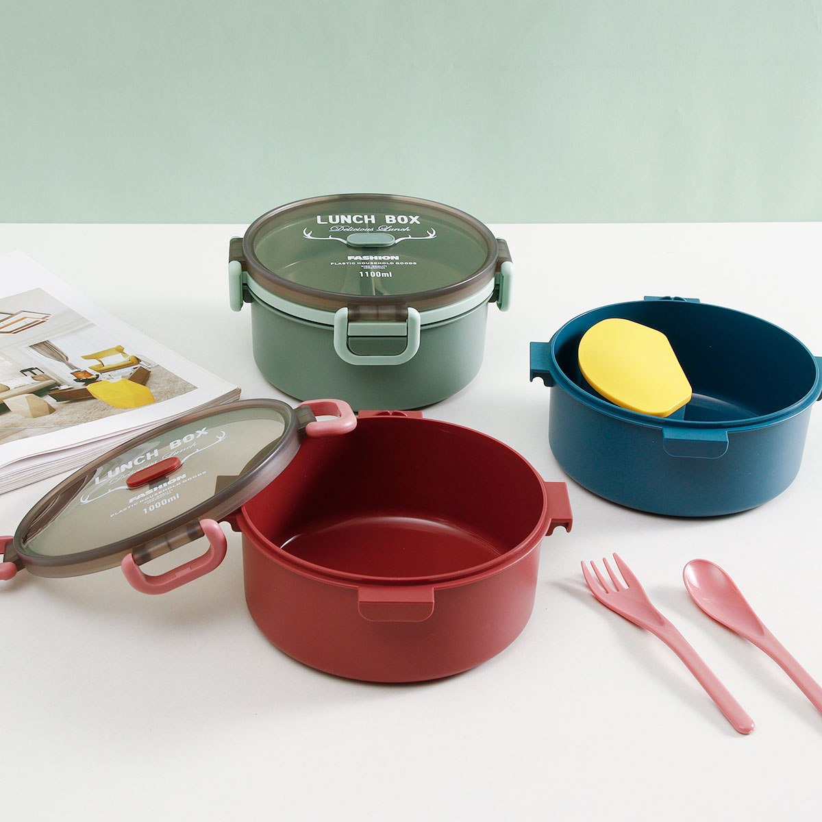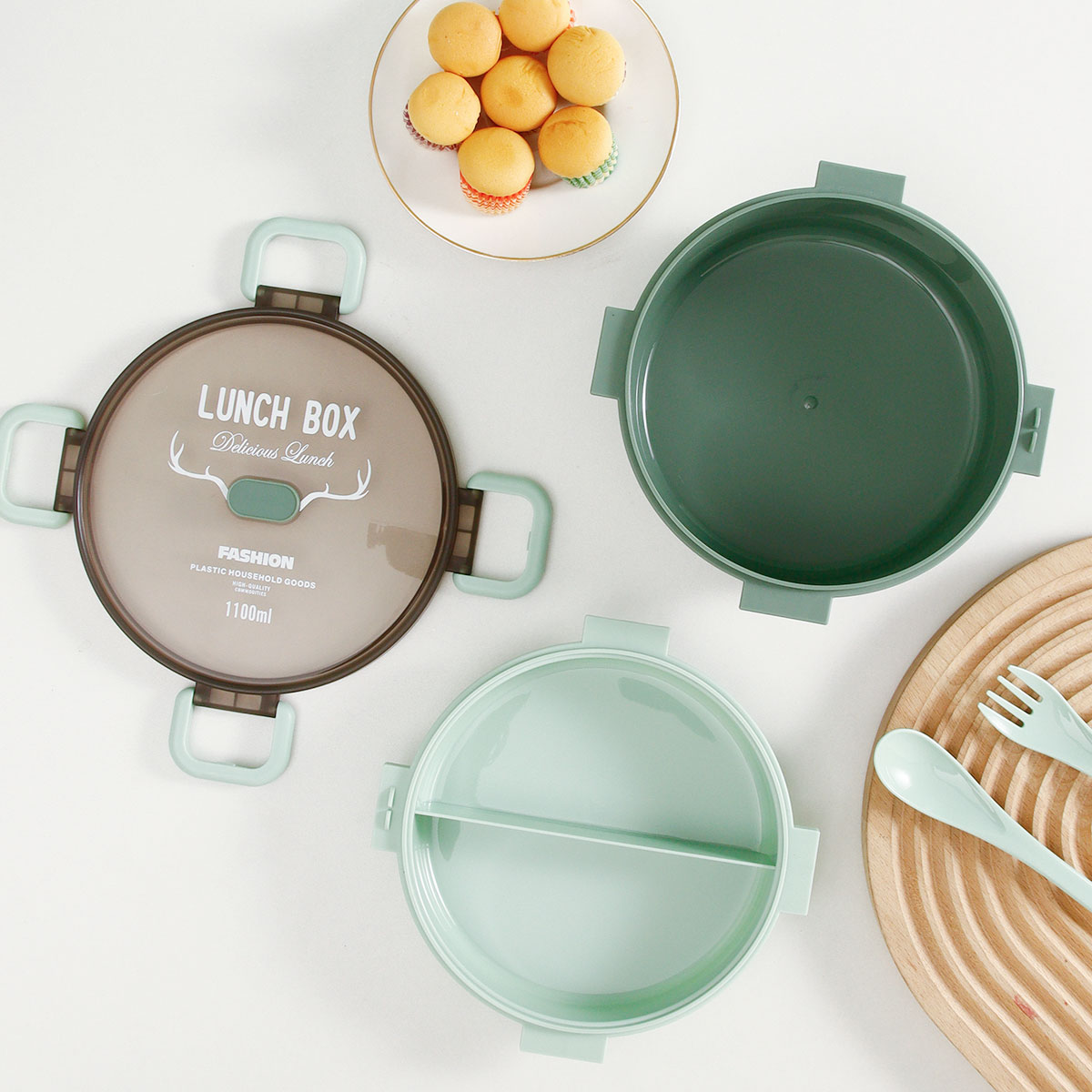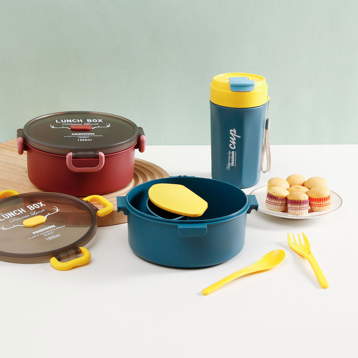 圓形雙層/單層密封飯盒+圓形/八角隨行杯