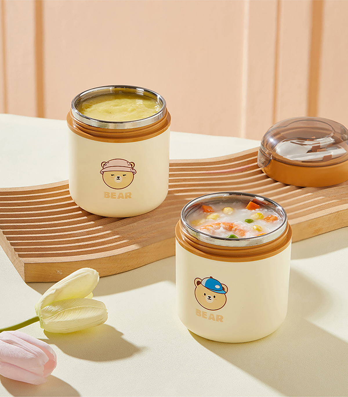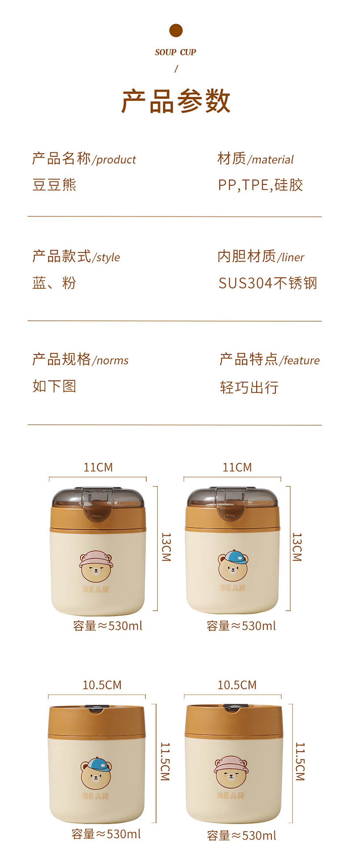 逗逗熊304不銹鋼湯杯530ml(平蓋/高蓋)【女孩/男孩】