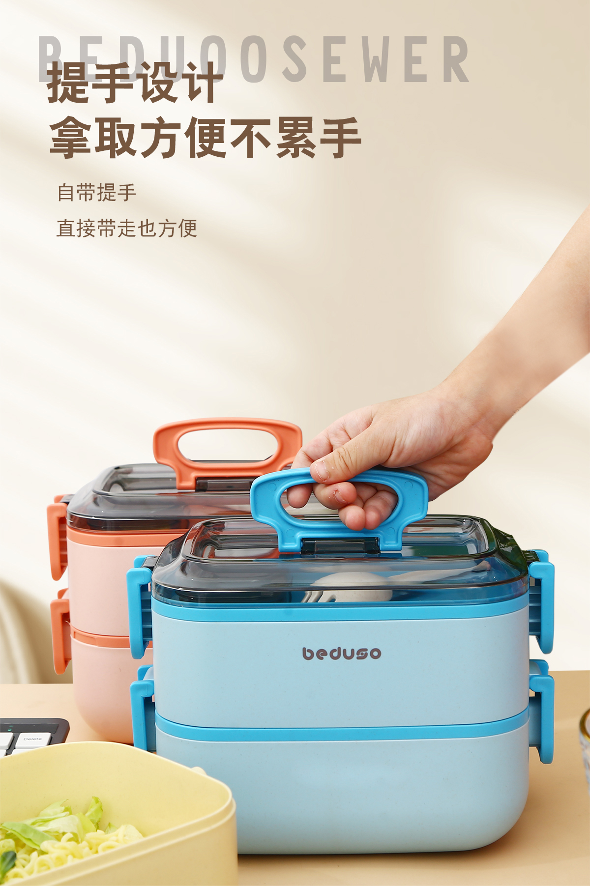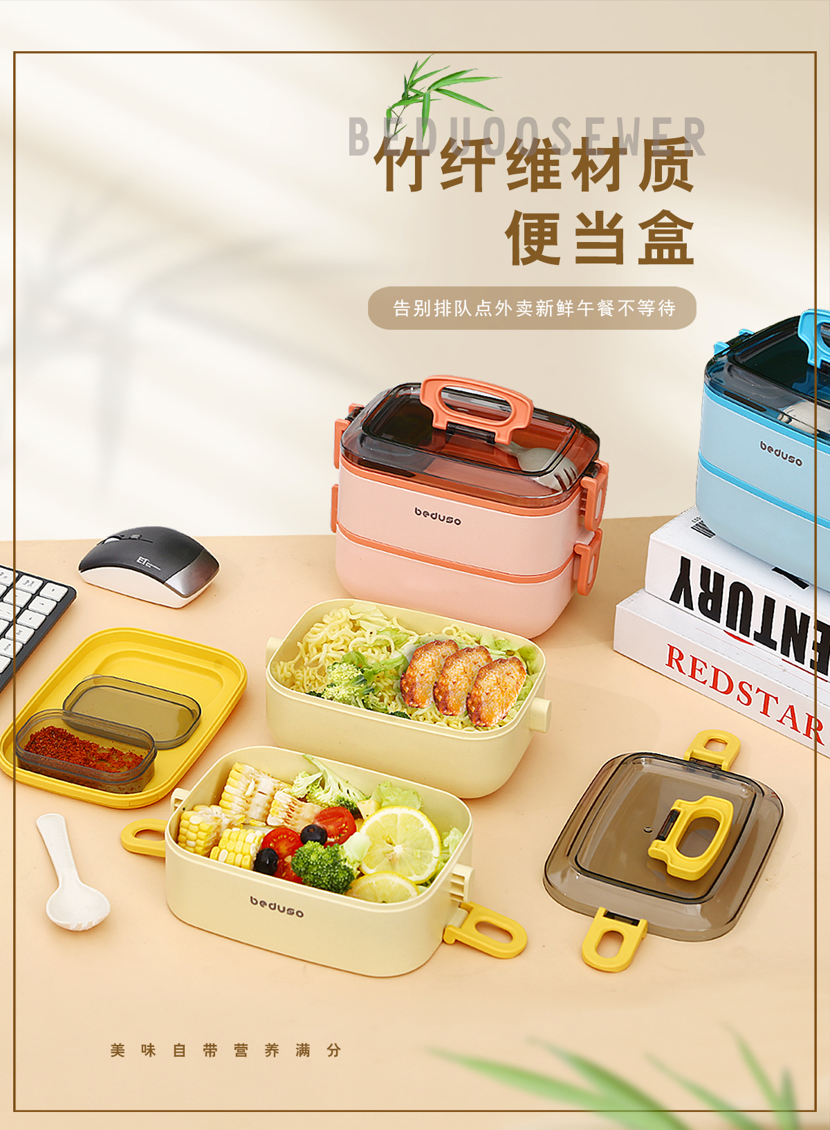 長方形竹纖維便當(dāng)盒單層1000ml/雙層1800ml