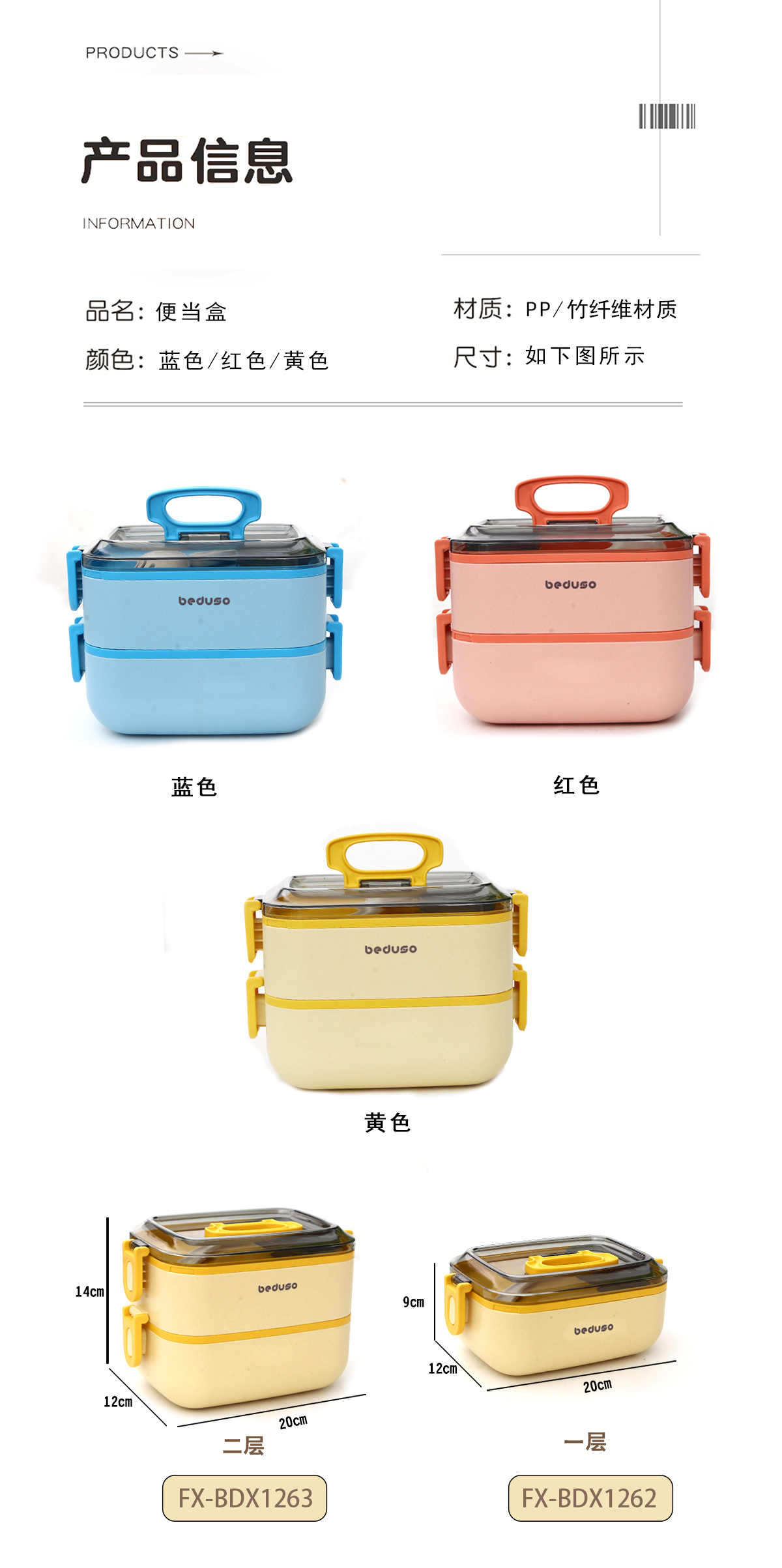 Size: FX-BDX1262(單層1000ml):200*120*90mm