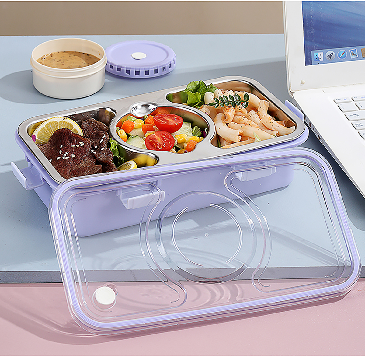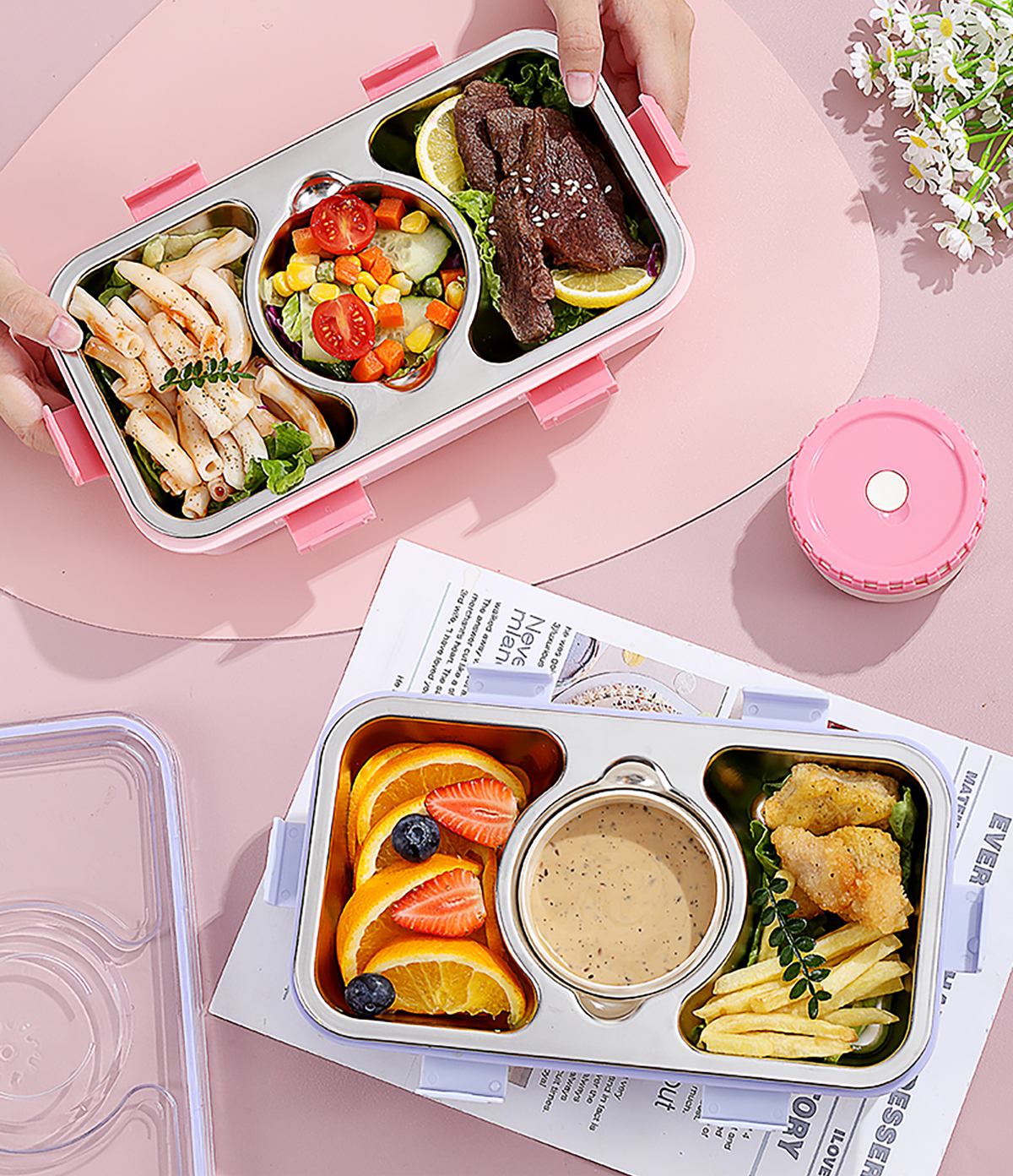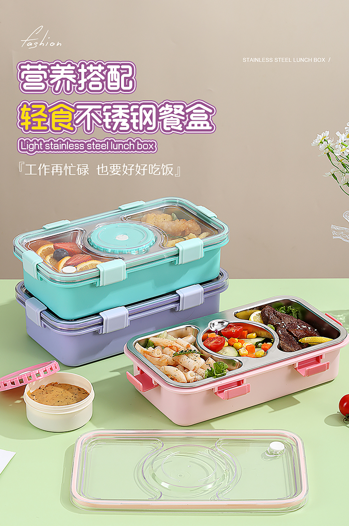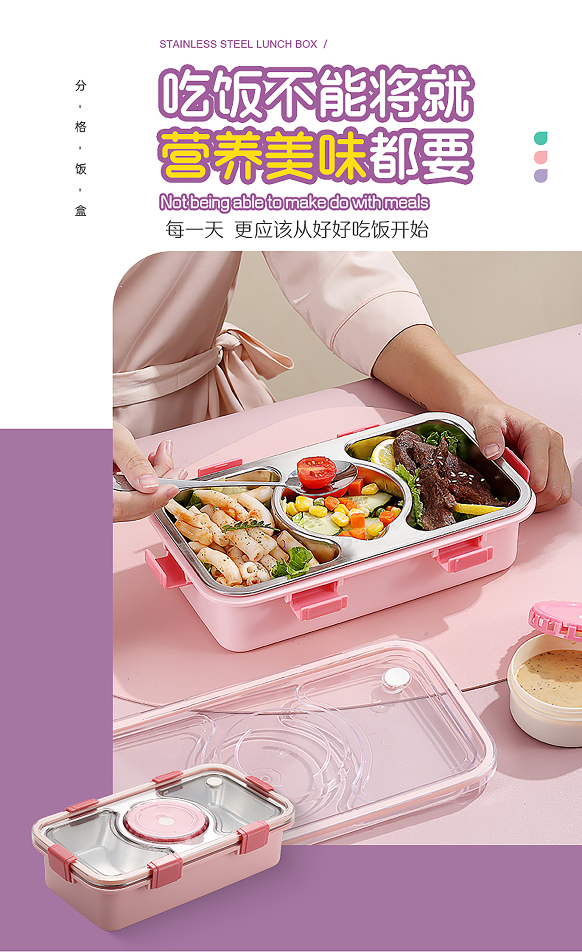 輕食不銹鋼餐盒三格帶大碗650ml+150ml