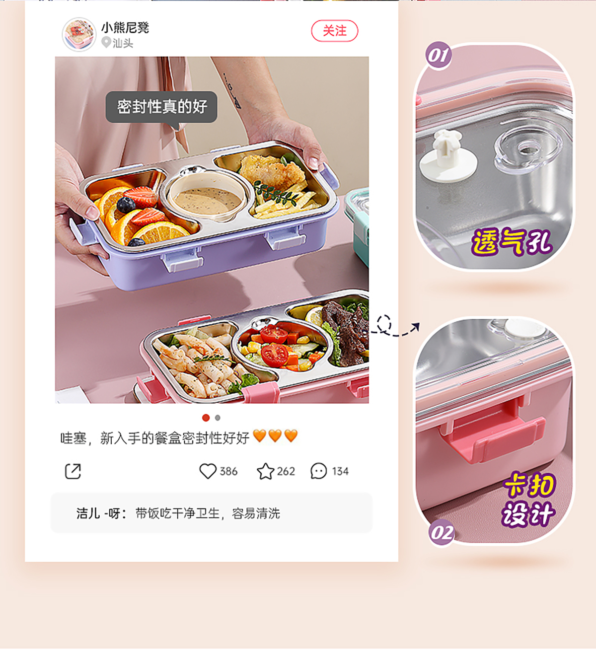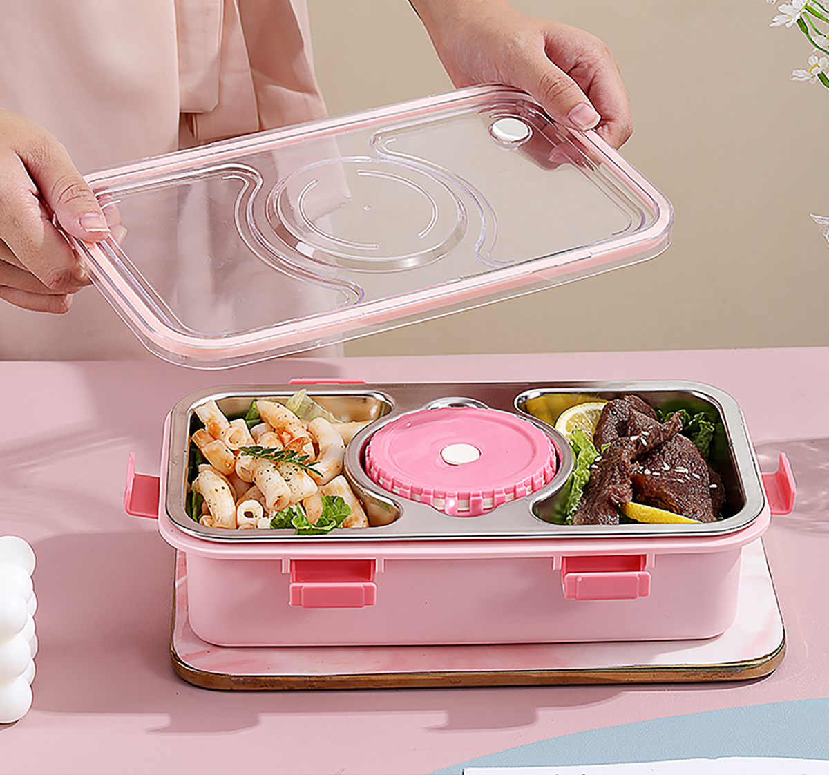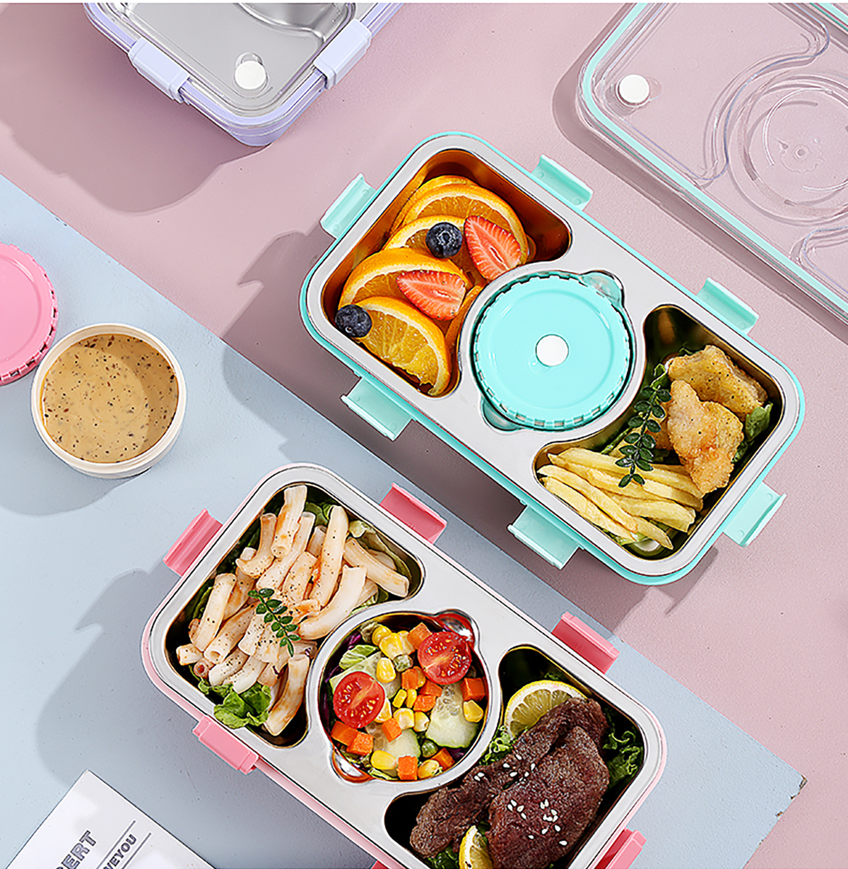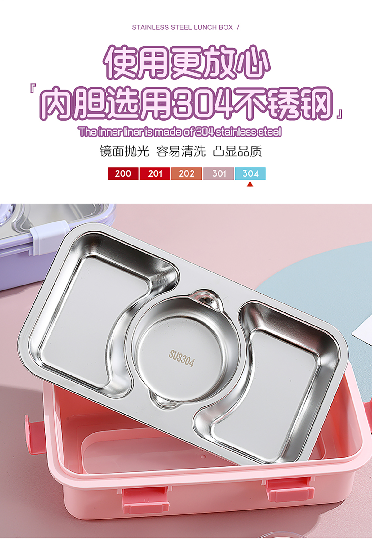 輕食不銹鋼餐盒三格帶大碗650ml+150ml