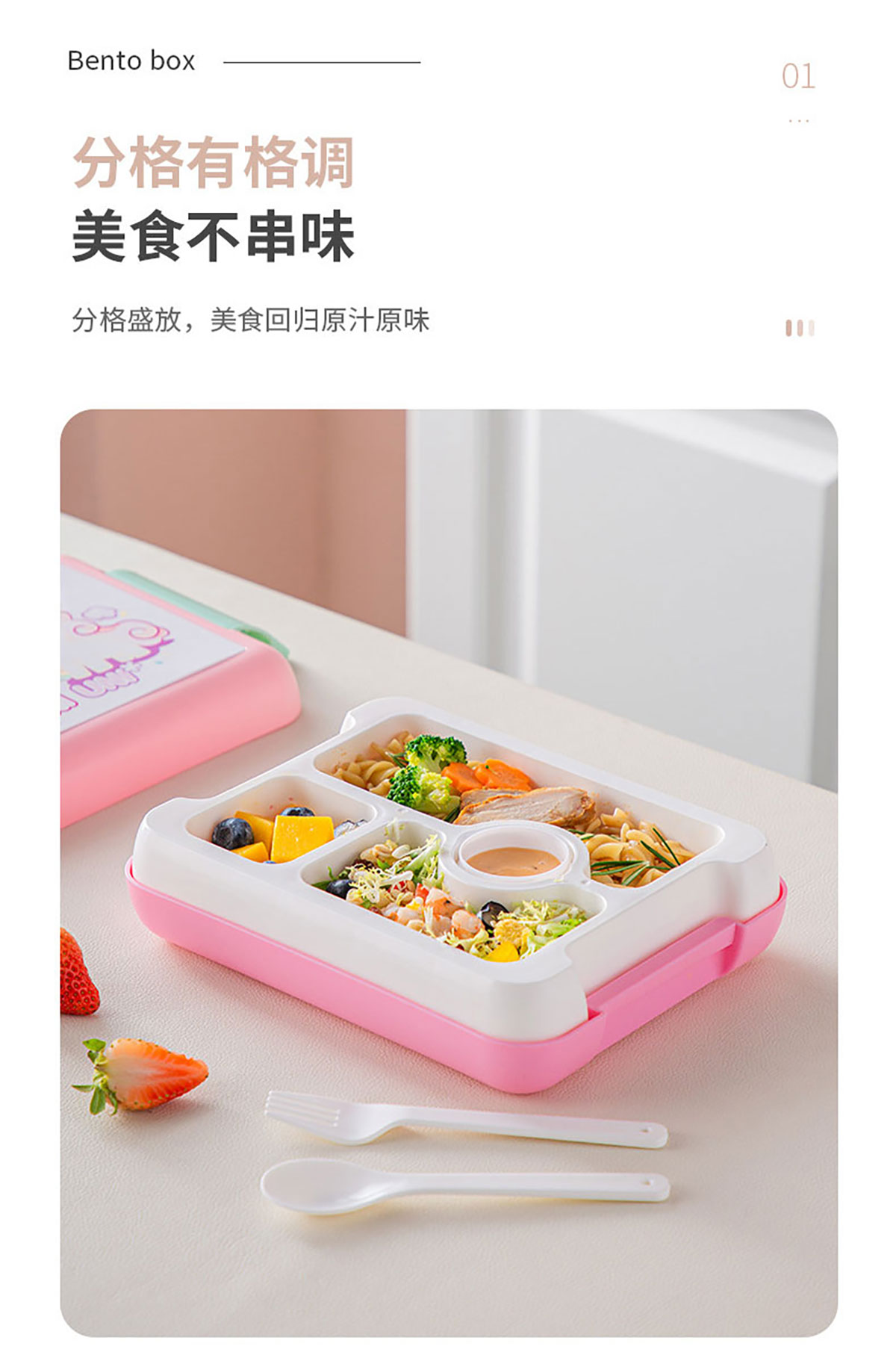 卡通款手提飯盒(配叉勺+醬料盒)
