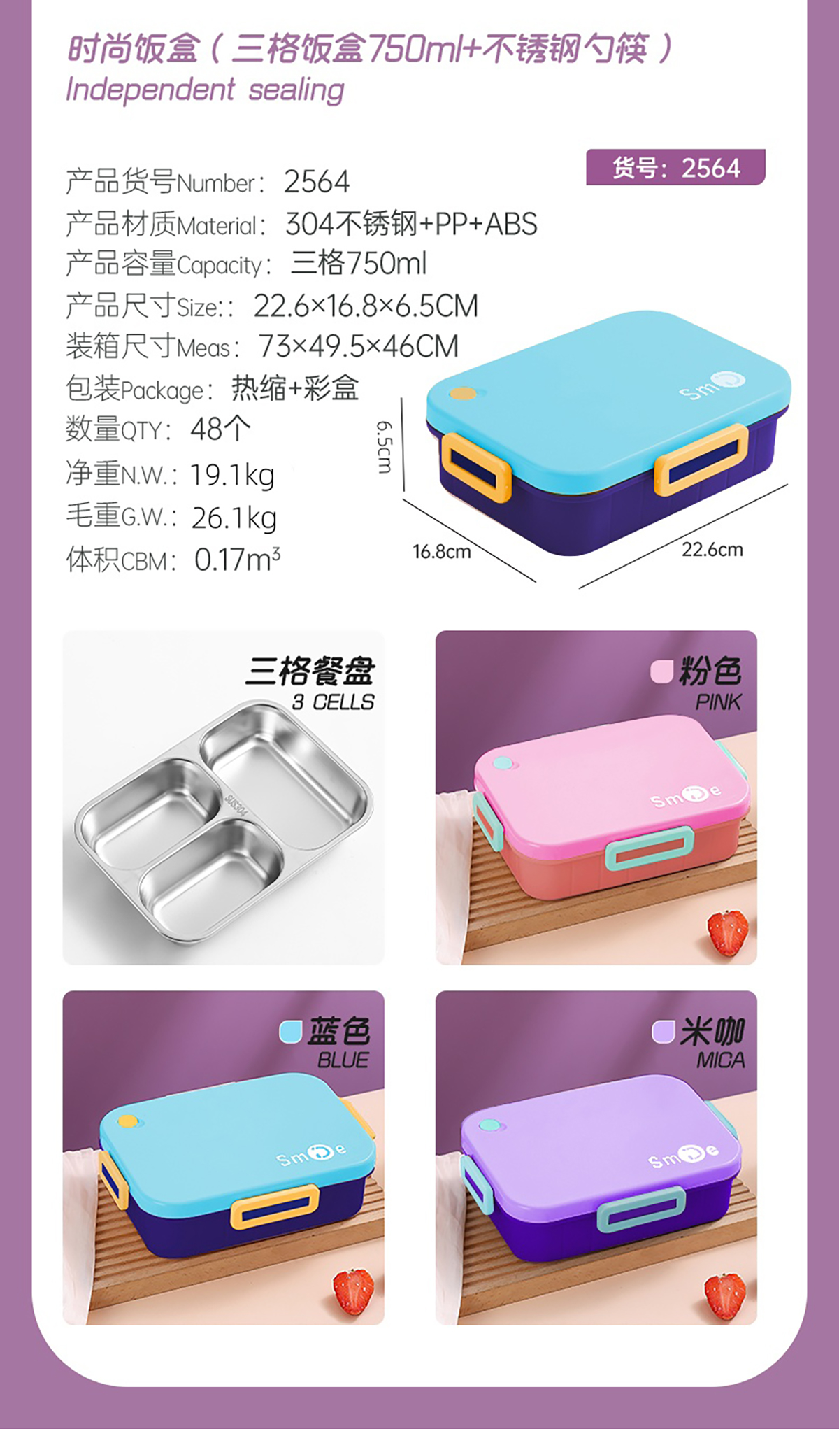 AQX-2564(三格):226*168*65mm/750ml