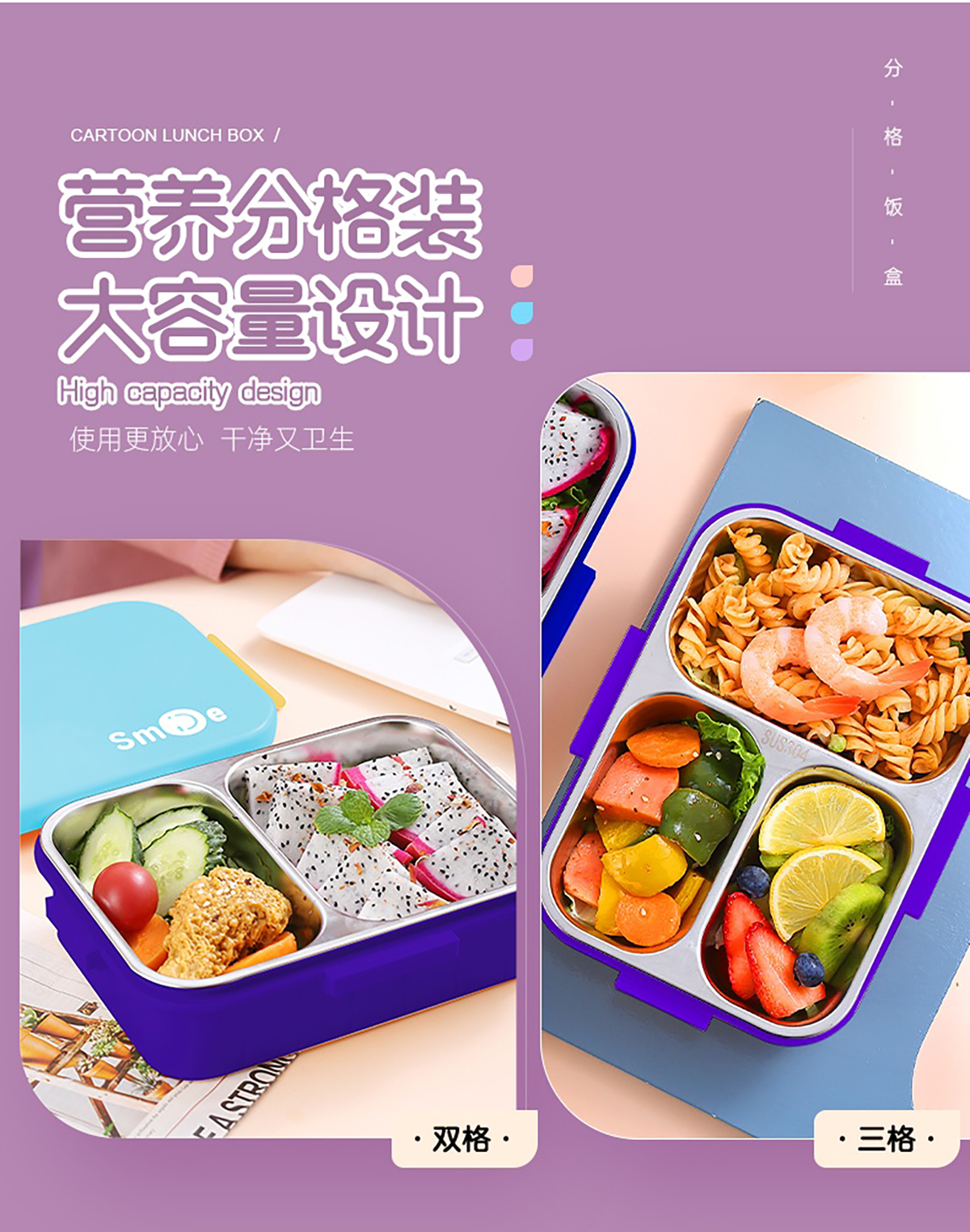 Size: AQX-2563(二格):226*168*65mm/800ml