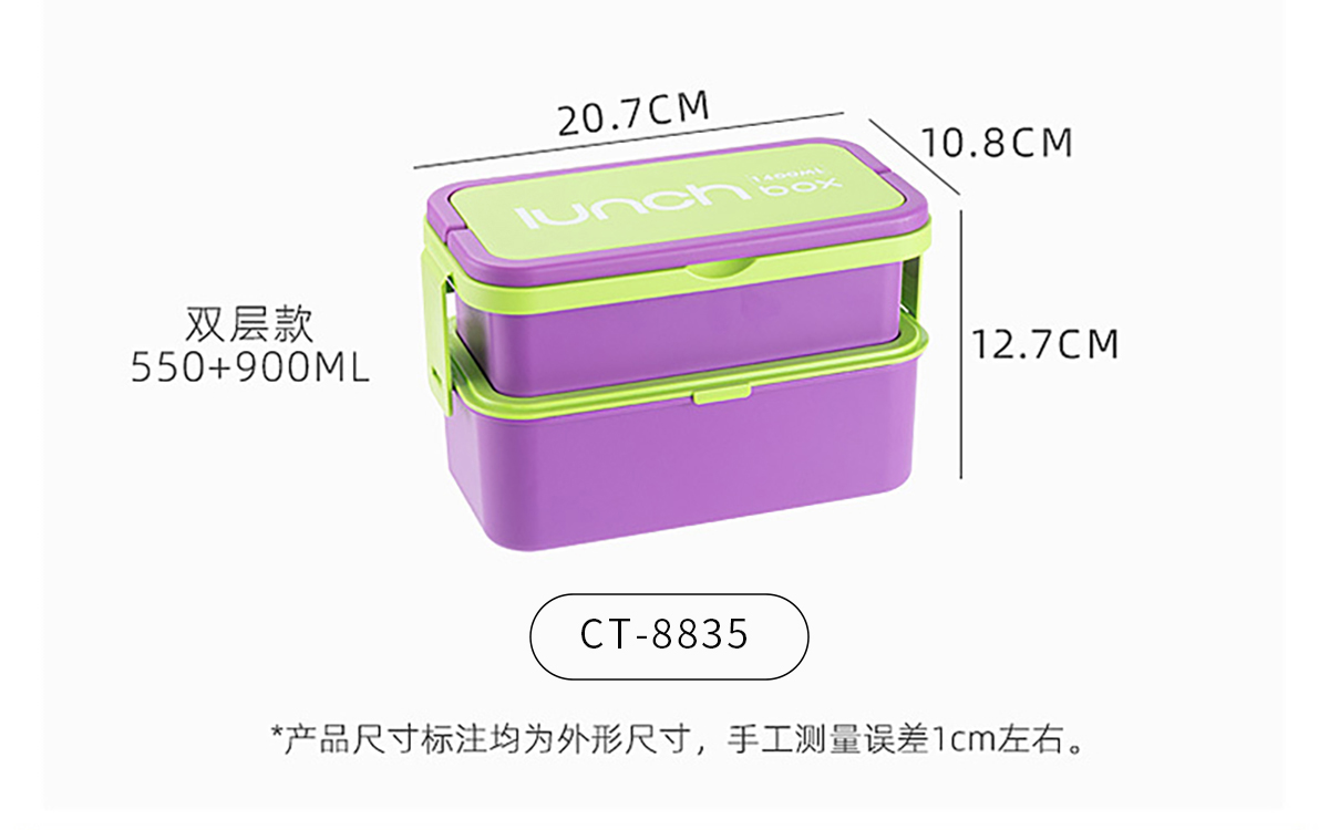 Size: CT-8835(雙層):207*108*127mm/550ml+900ml