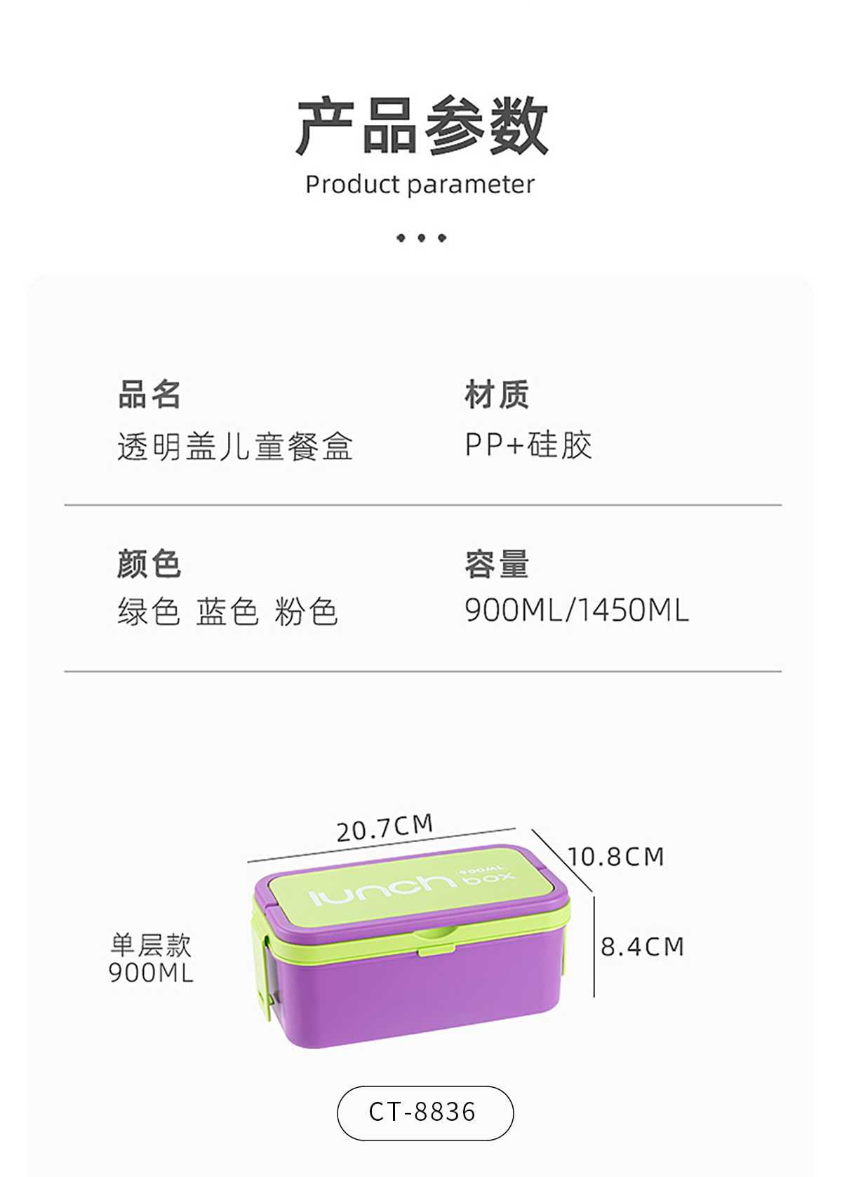 CT-8836(單層):207*108*84mm/900ml