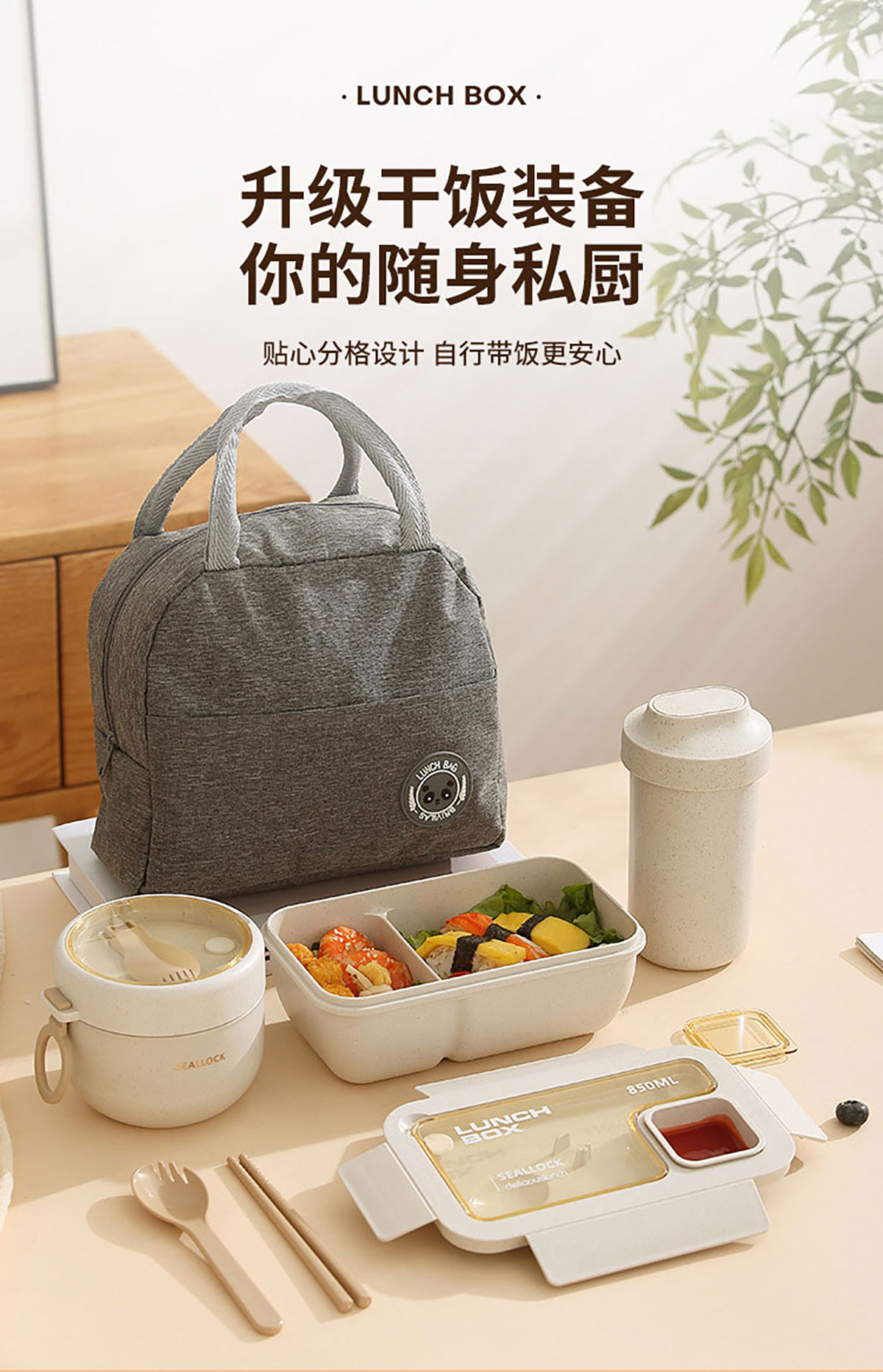 簡麥便當(dāng)盒飯盒/套裝(飯盒+水杯/飯盒+水杯+灰色餐袋/飯盒+燕麥杯+灰色餐袋)