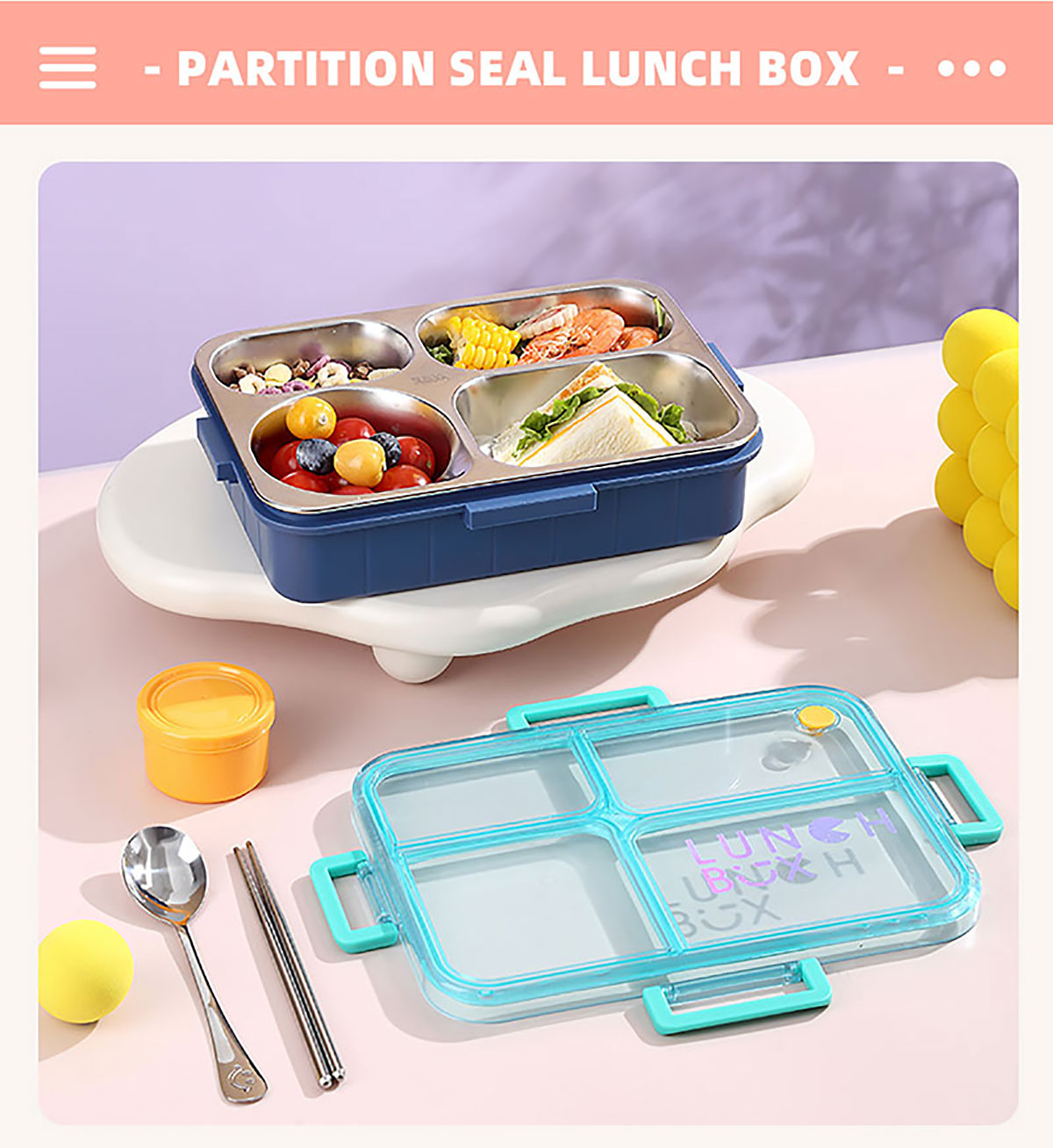 AQX-2623:262*193*65mm/不銹鋼4格900ml+鋼碗150ml