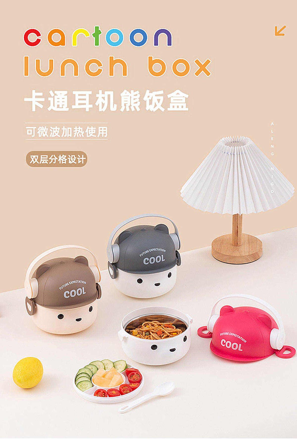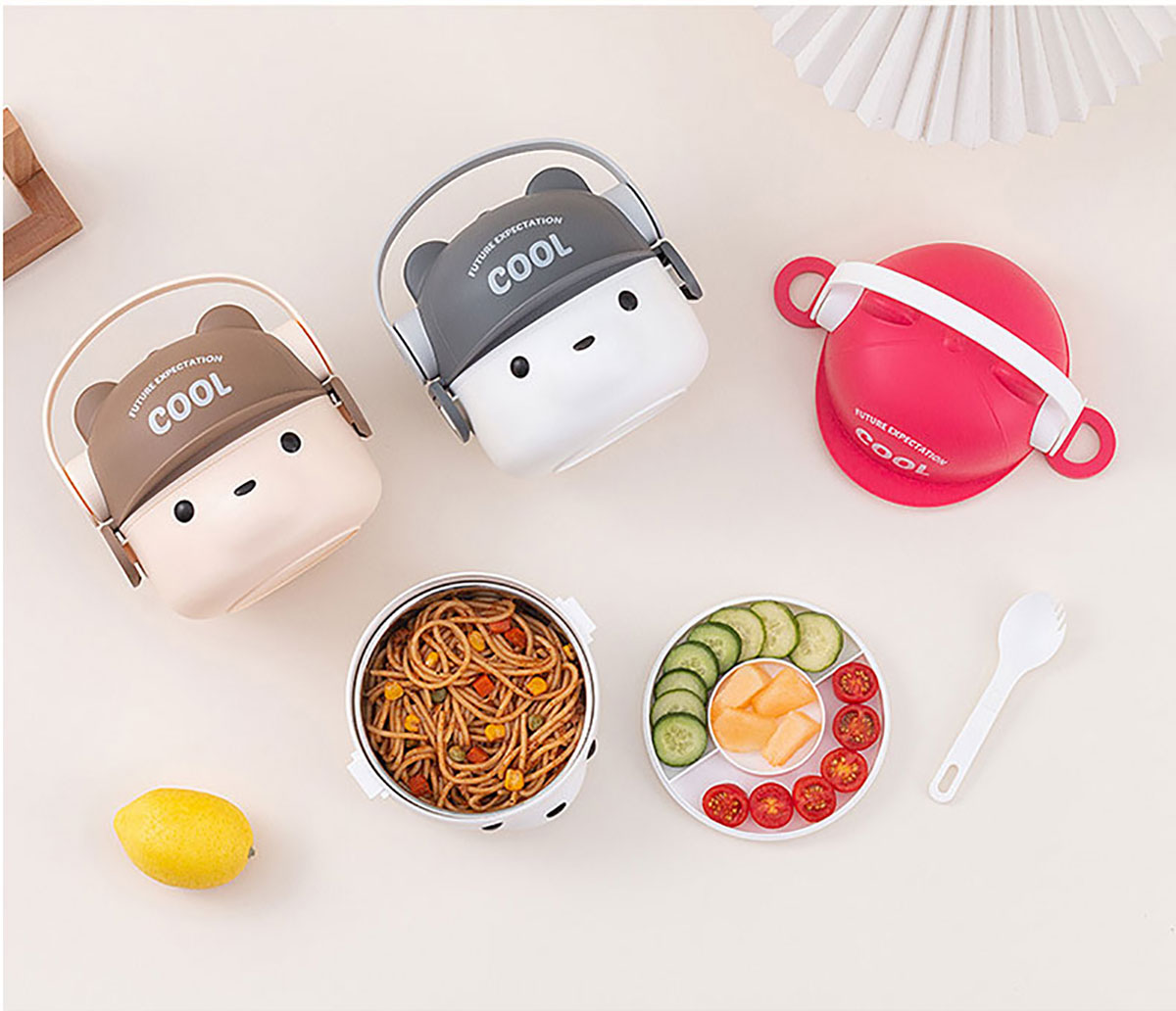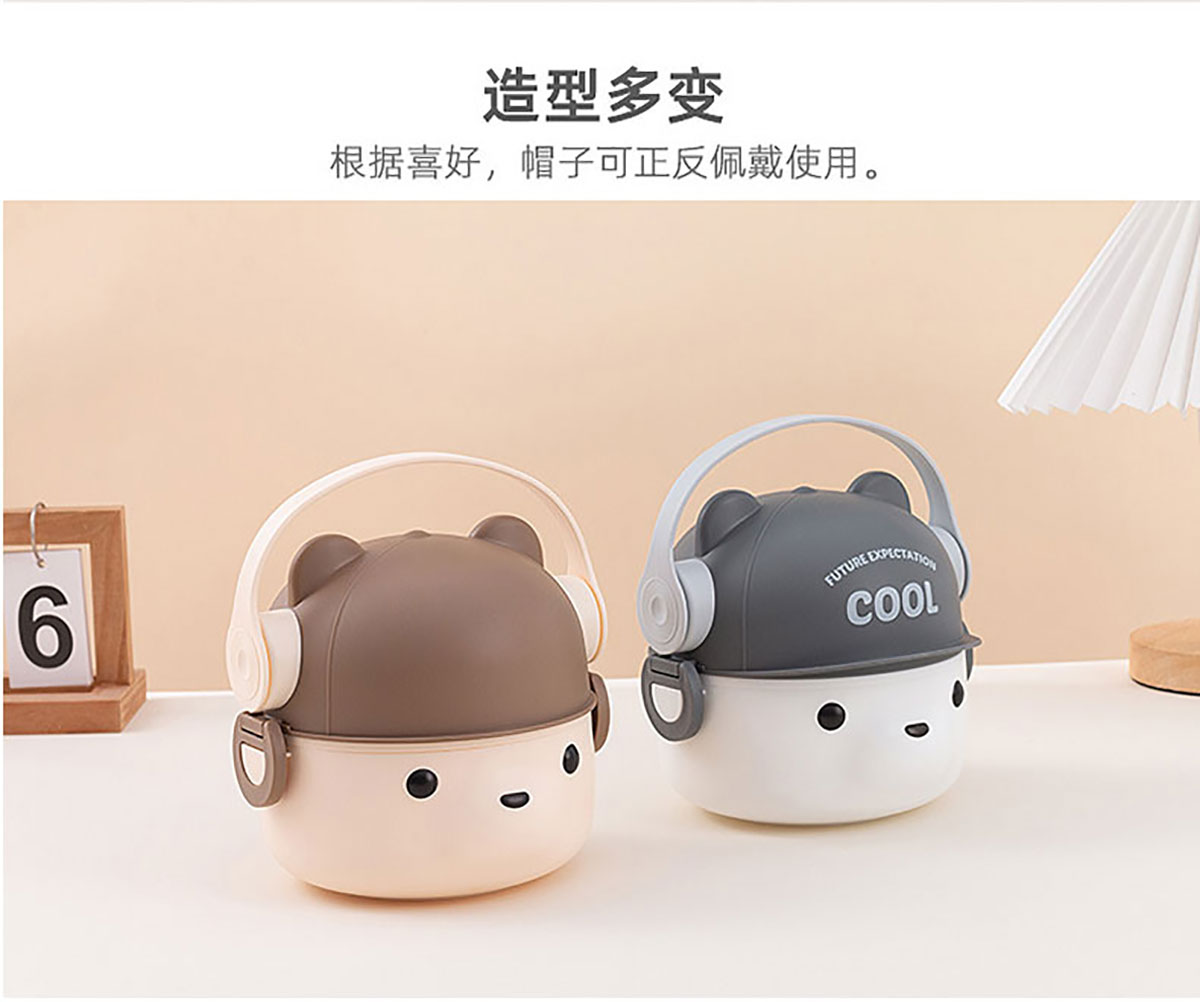 可愛(ài)帽子耳機(jī)熊飯盒/套裝飯盒 塑料款/不銹鋼款