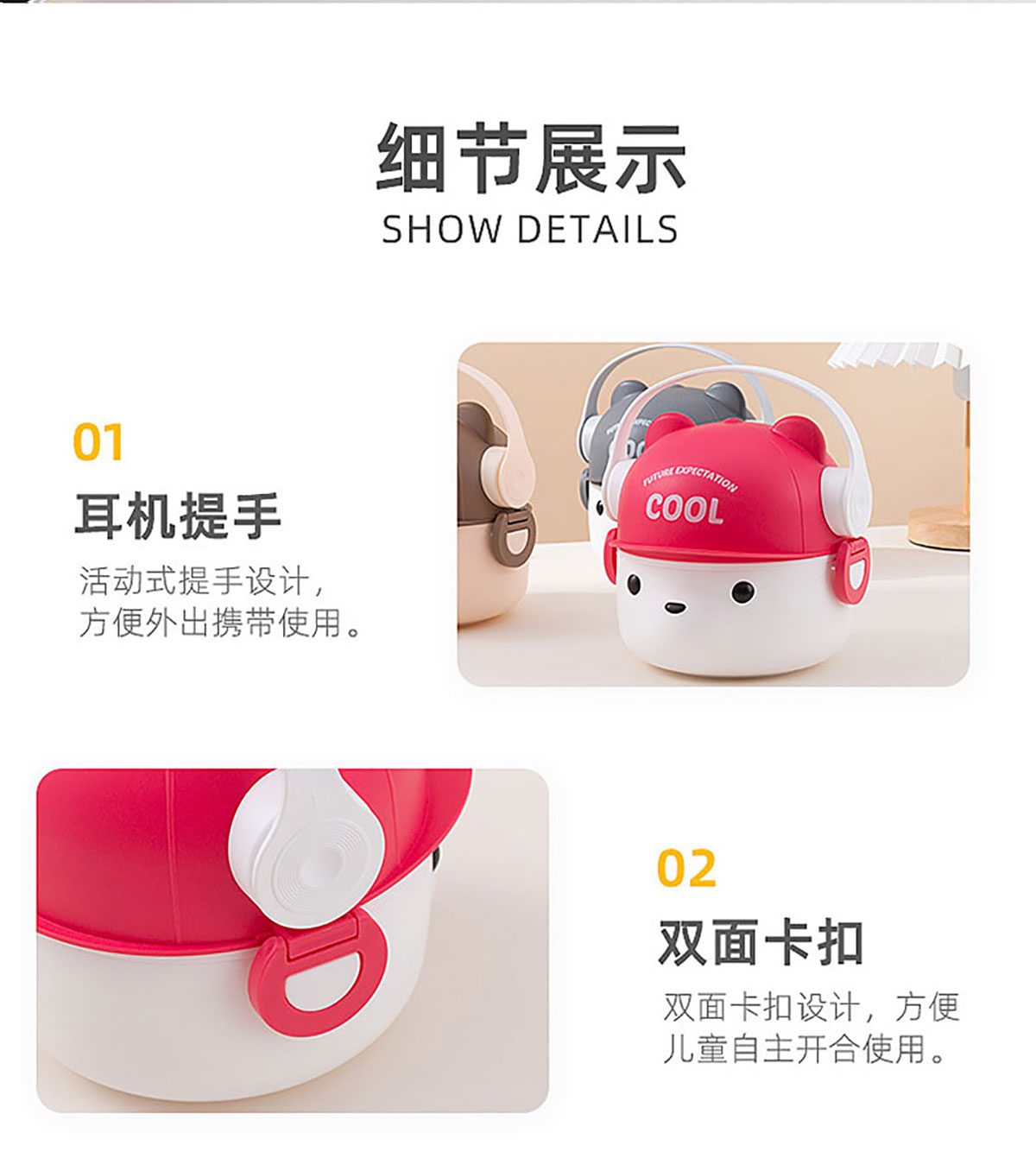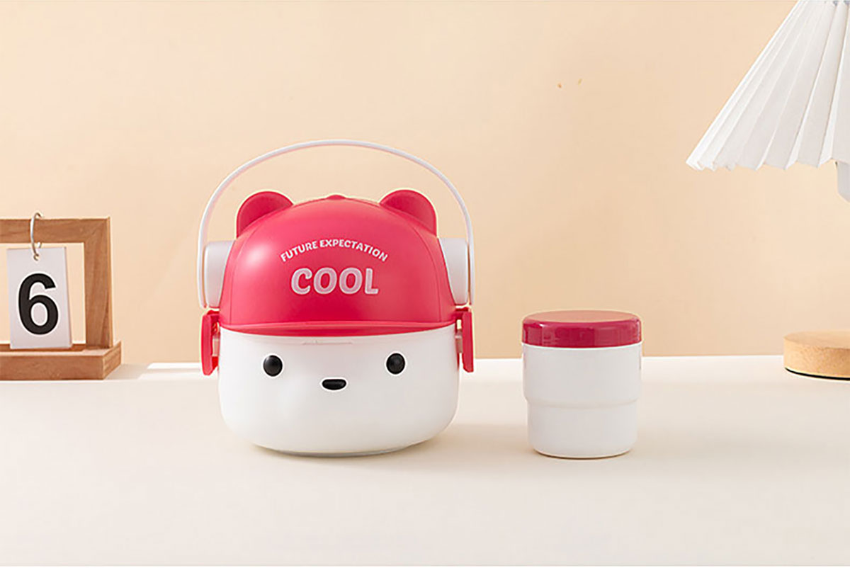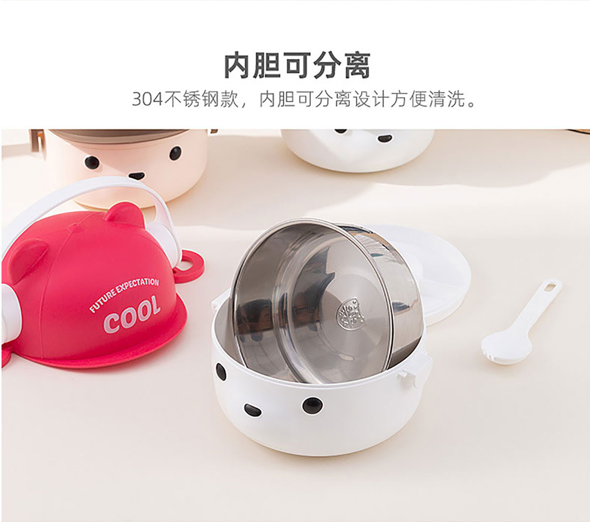 可愛(ài)帽子耳機(jī)熊飯盒/套裝飯盒 塑料款/不銹鋼款