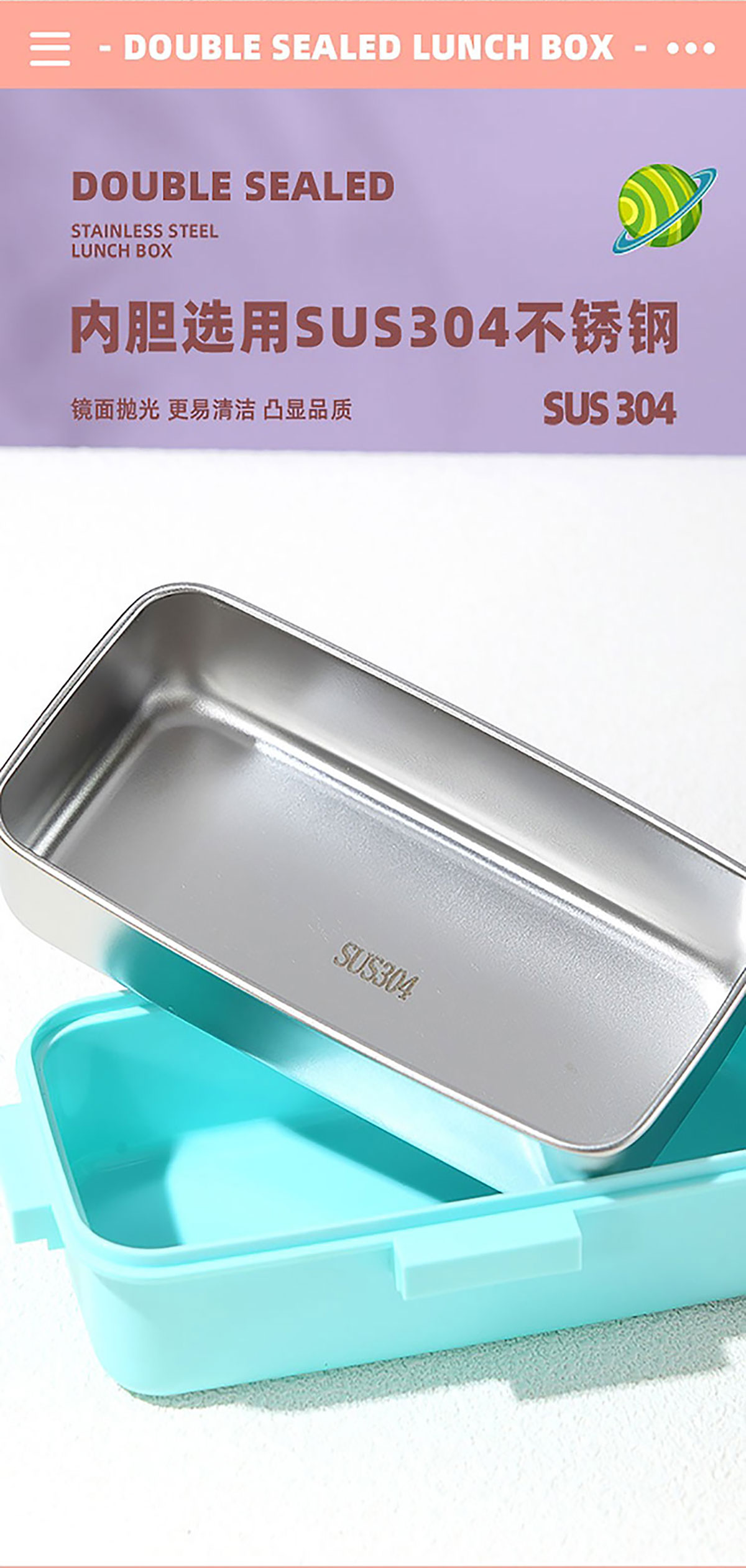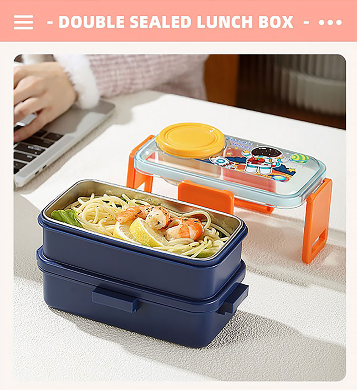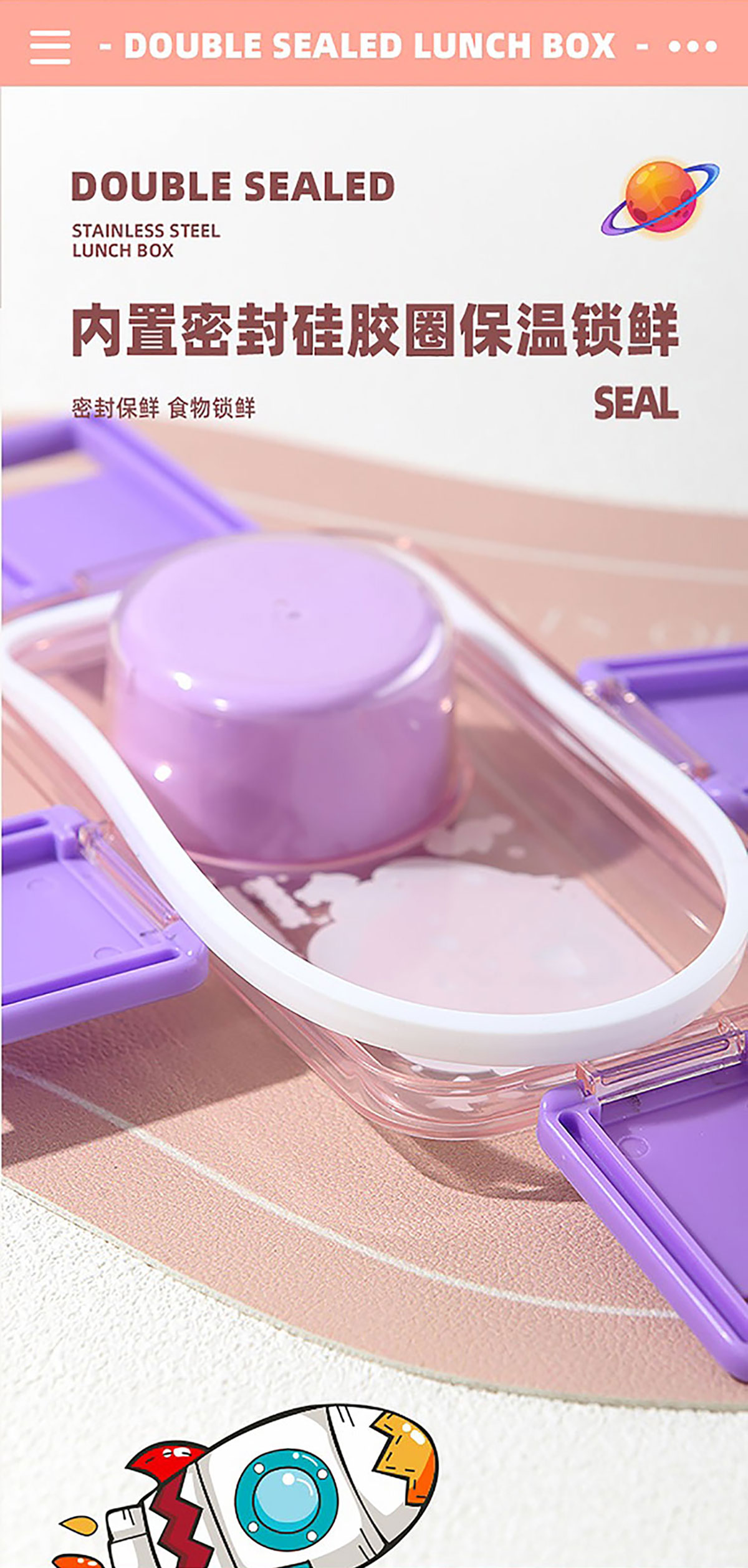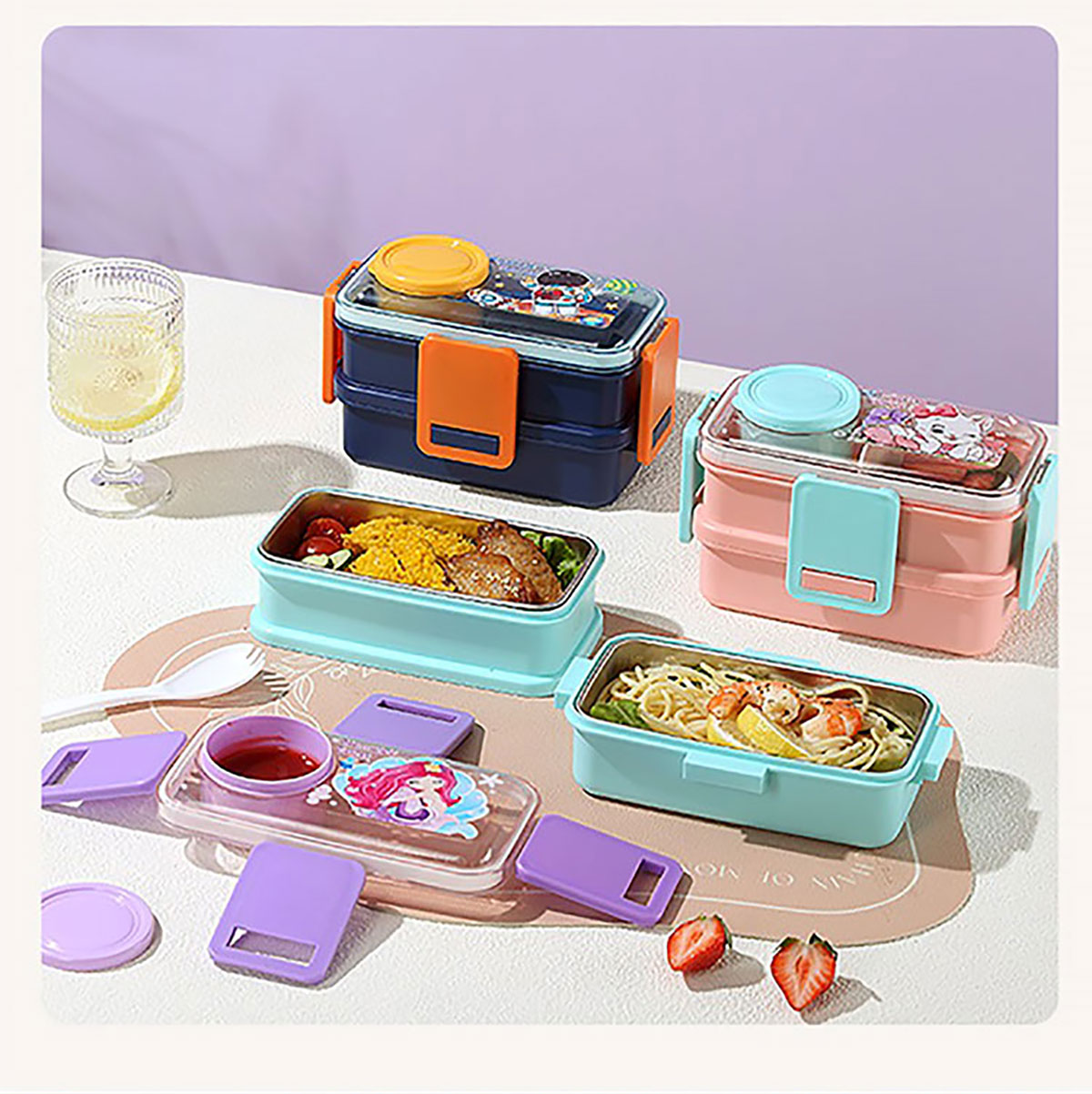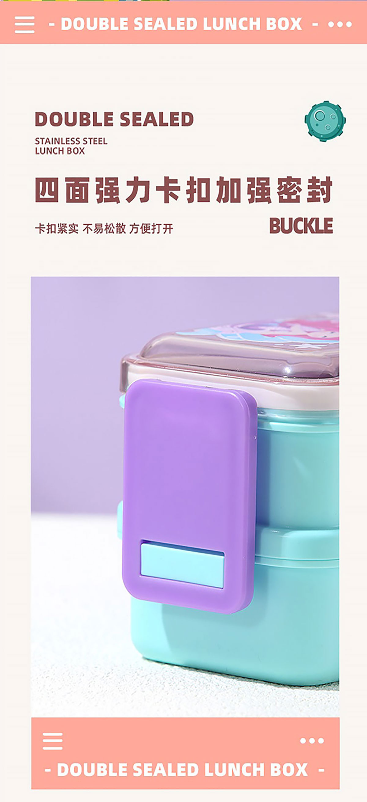 彩光卡通雙層不銹鋼餐盒(500mlx2+外置醬料杯80ml)