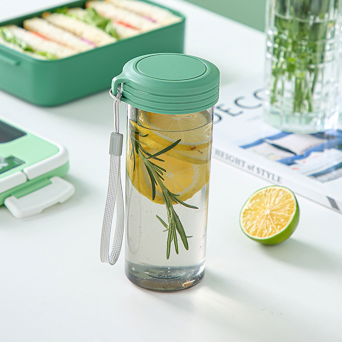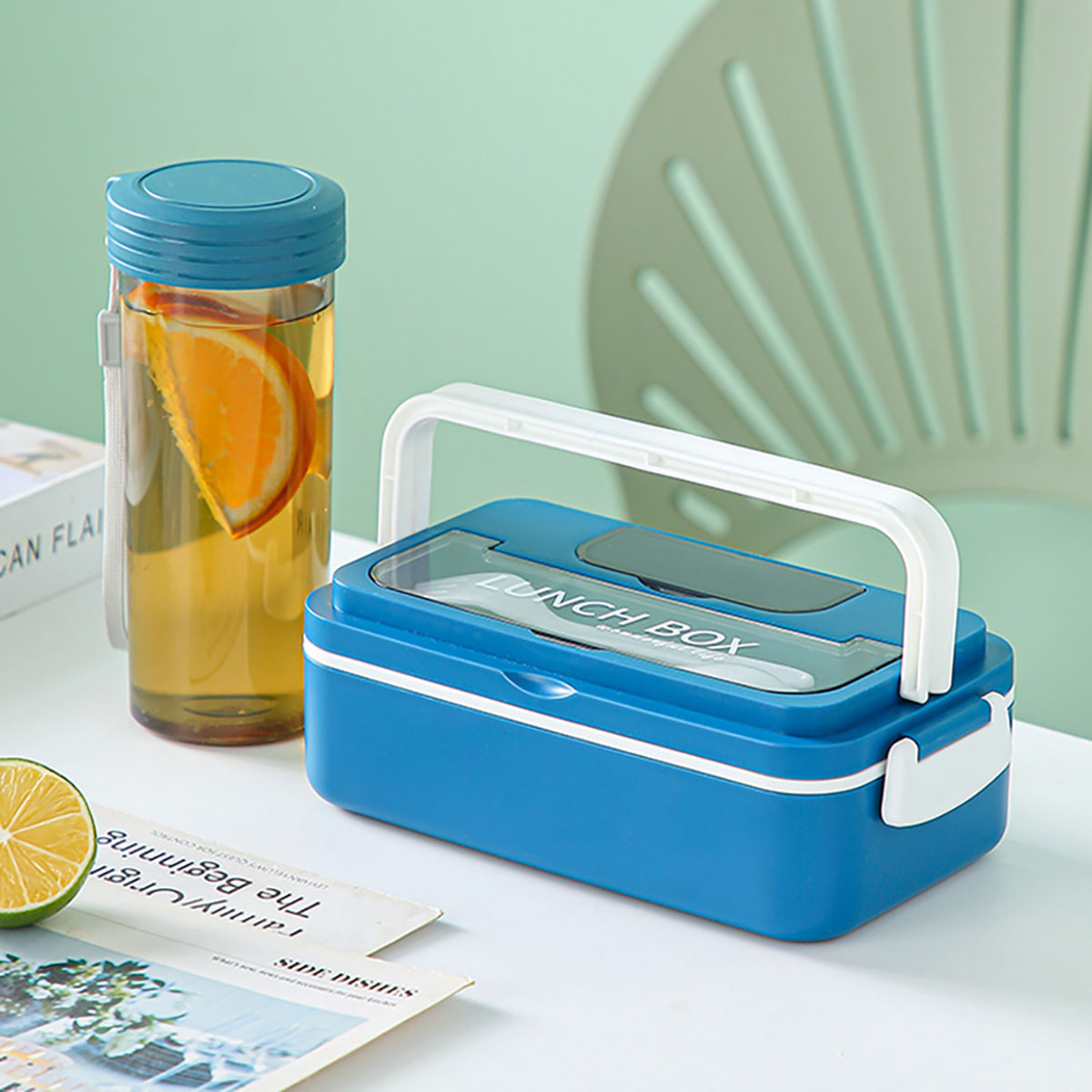 長方形單層套裝水杯飯盒(塑料)