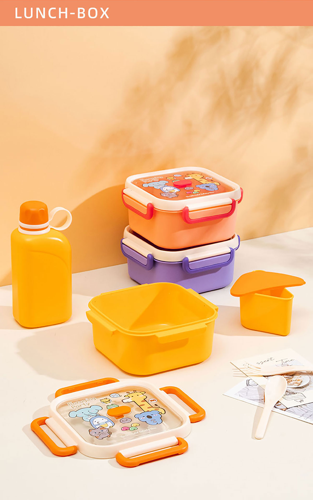 尚趣正方單層飯盒(1000ml)(含格子)/+圓形/方形運(yùn)動(dòng)水壺(500ml)