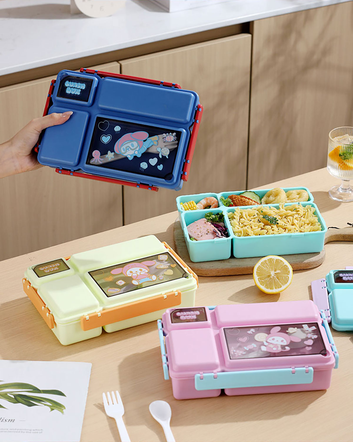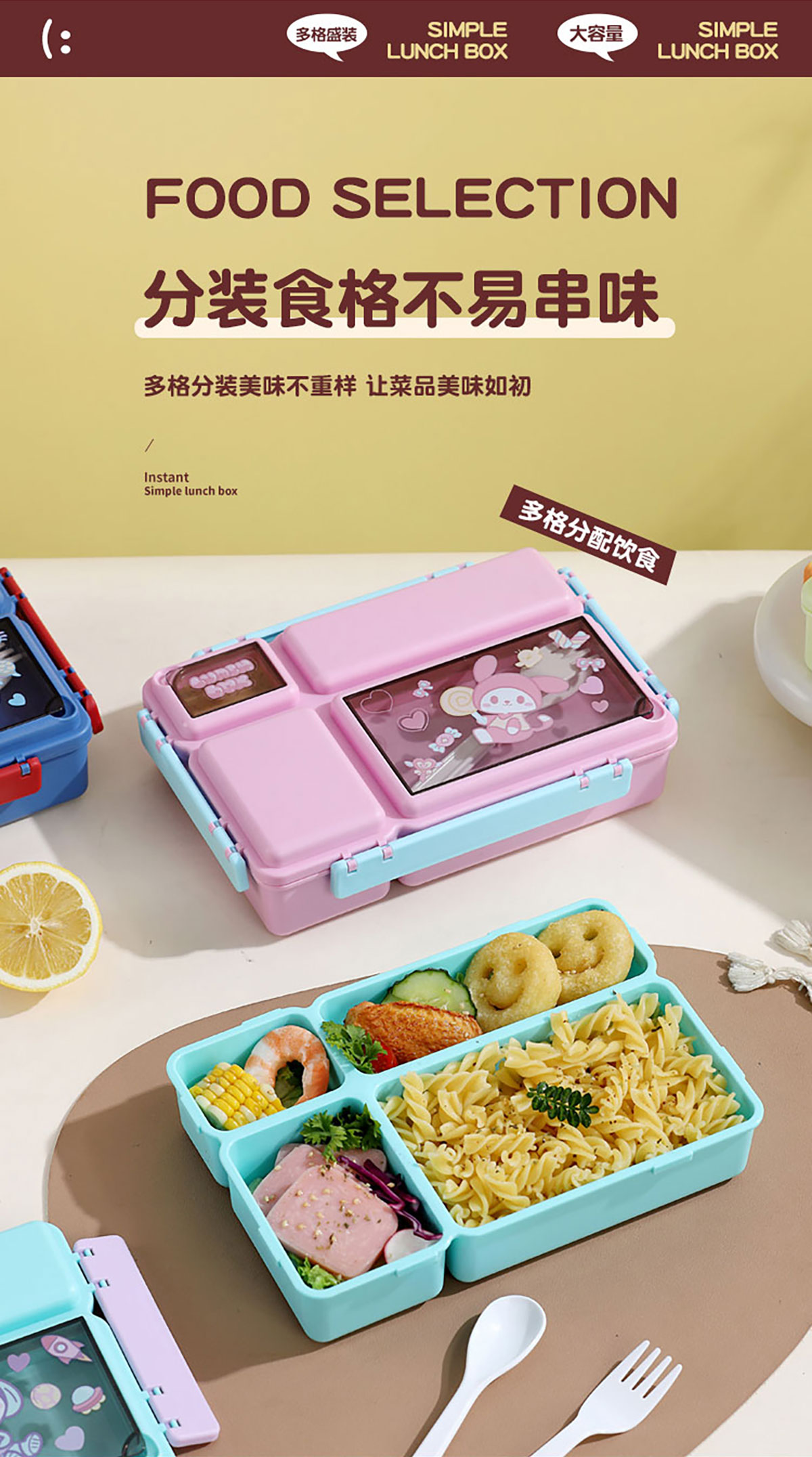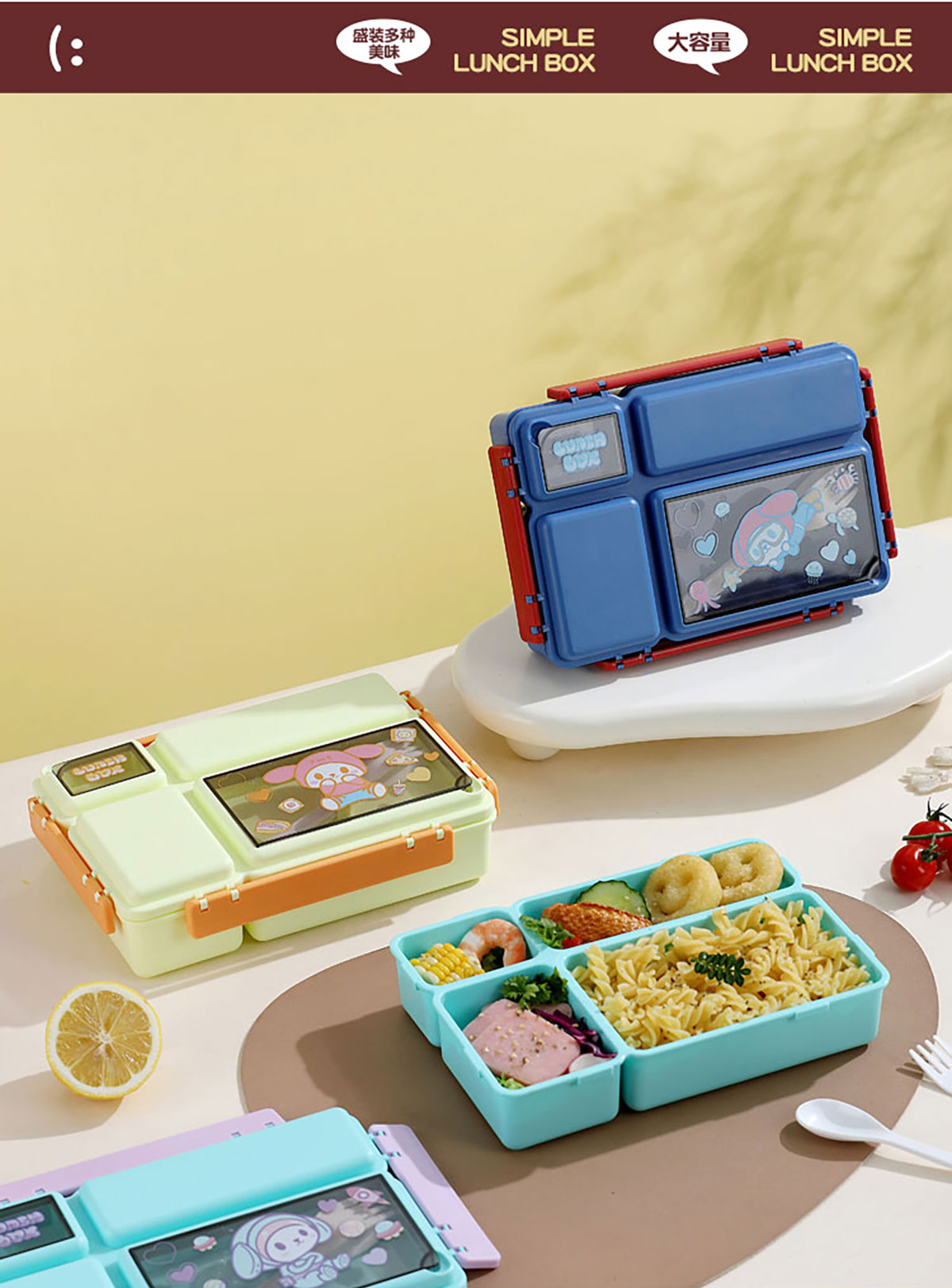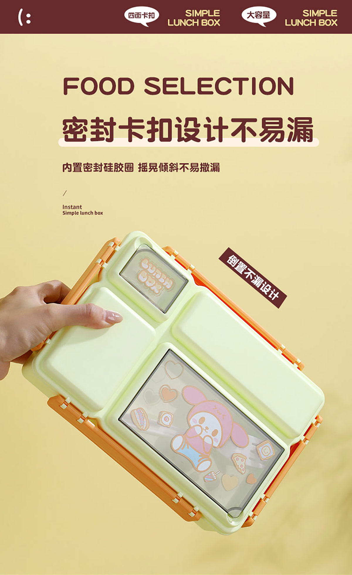 長方分格飯盒(卡通)1150ml