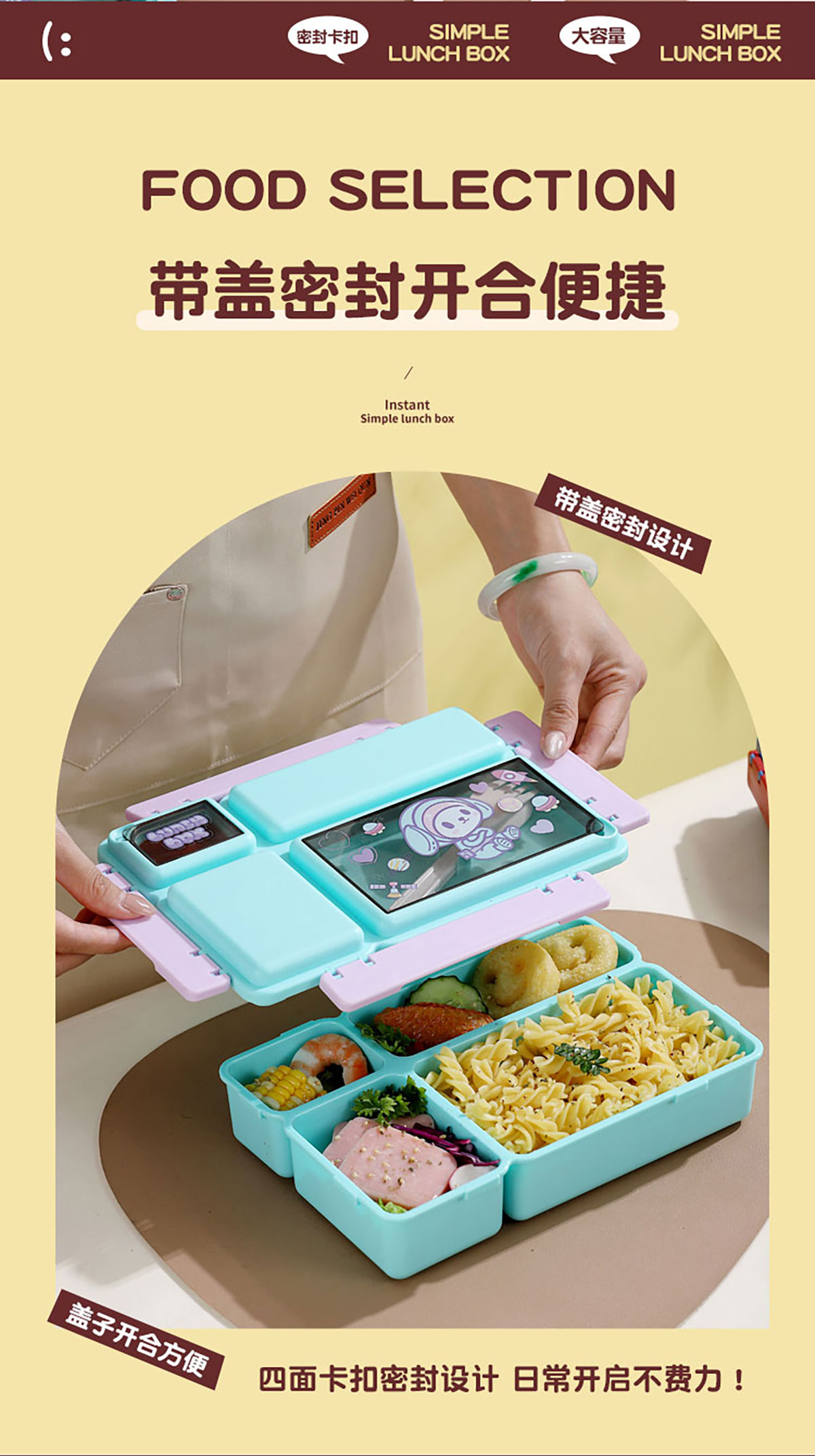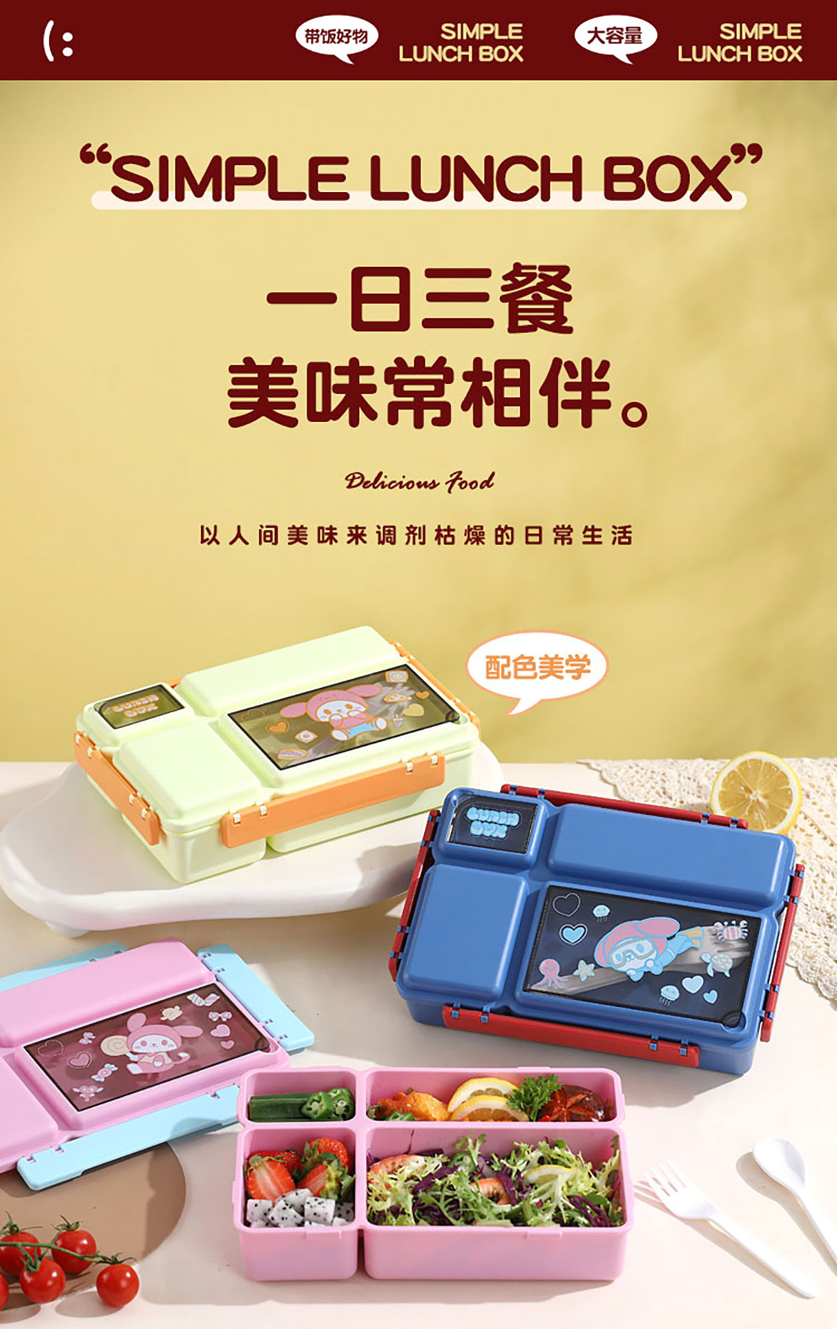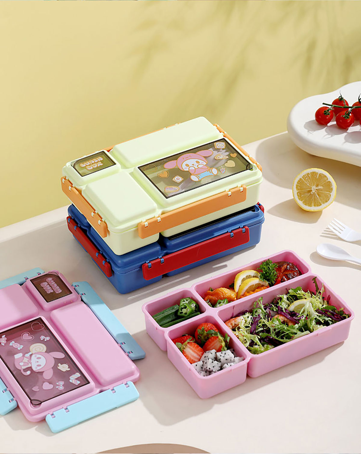 長方分格飯盒(卡通)1150ml