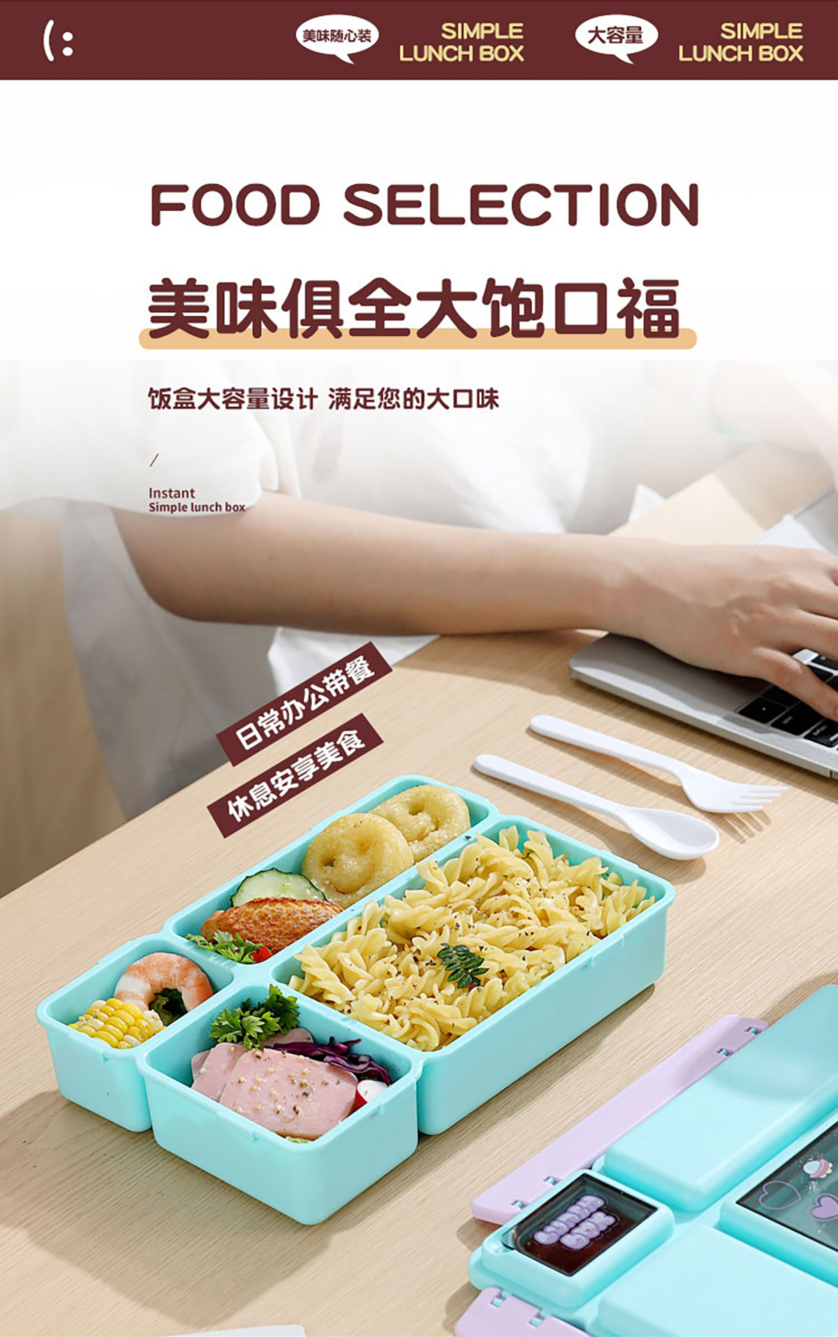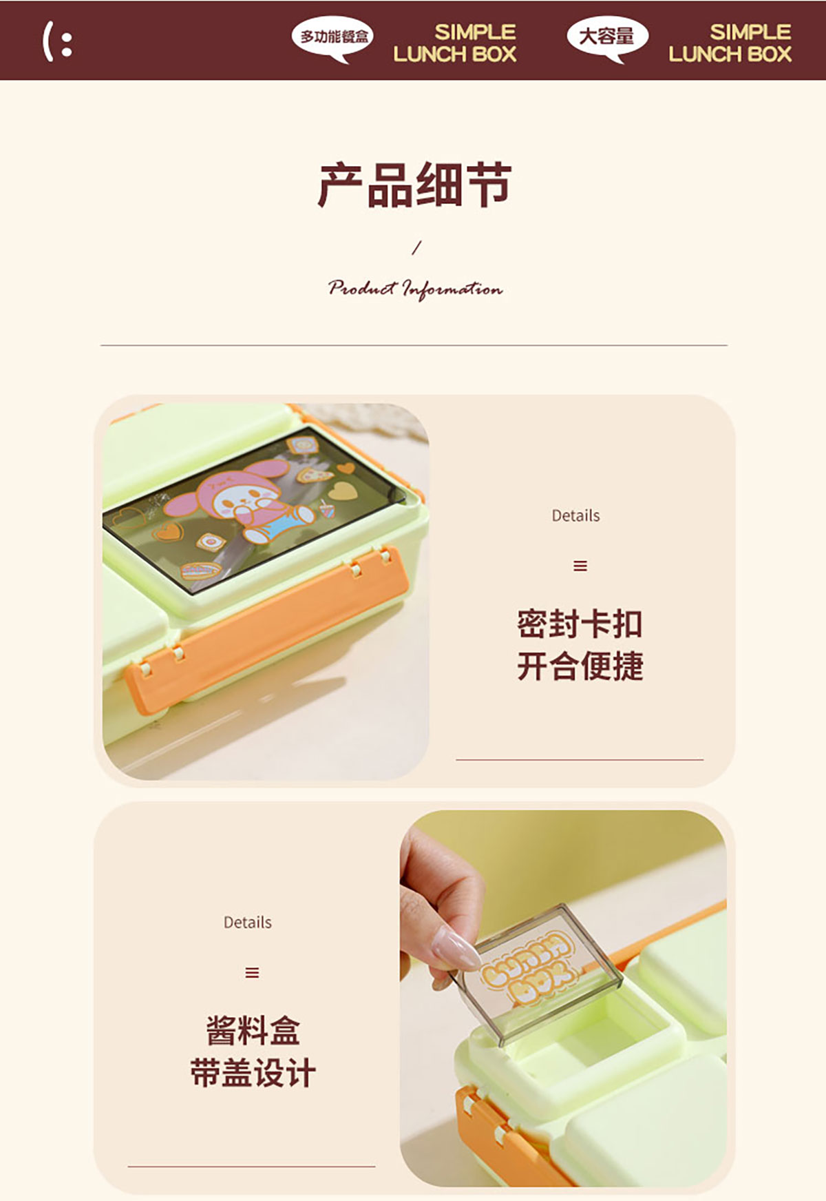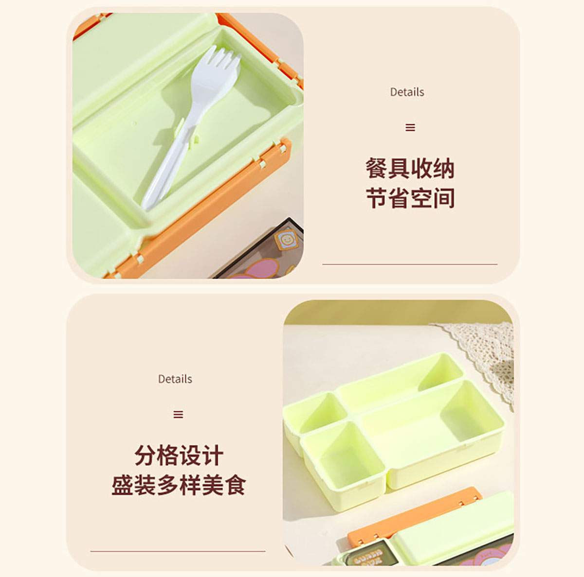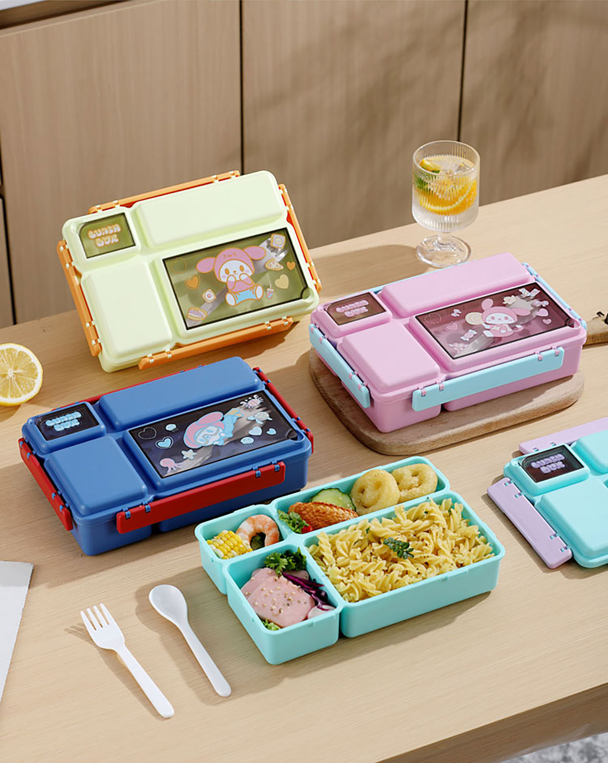 長方分格飯盒(卡通)1150ml