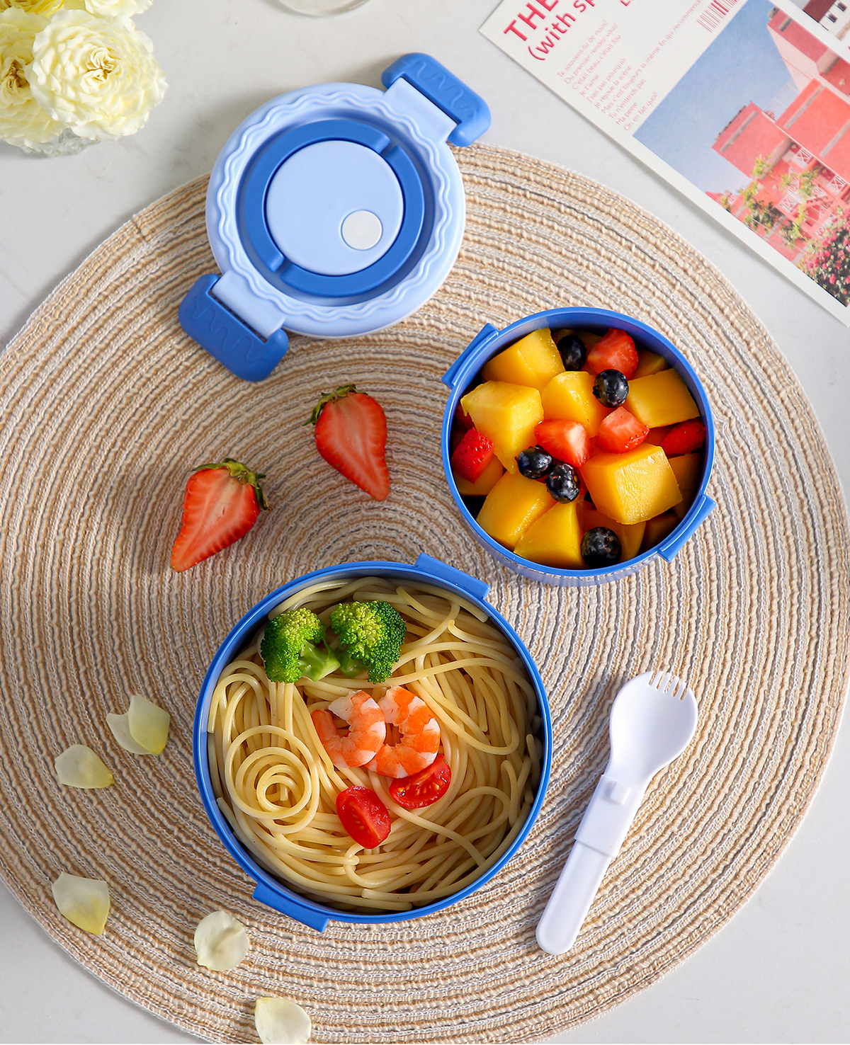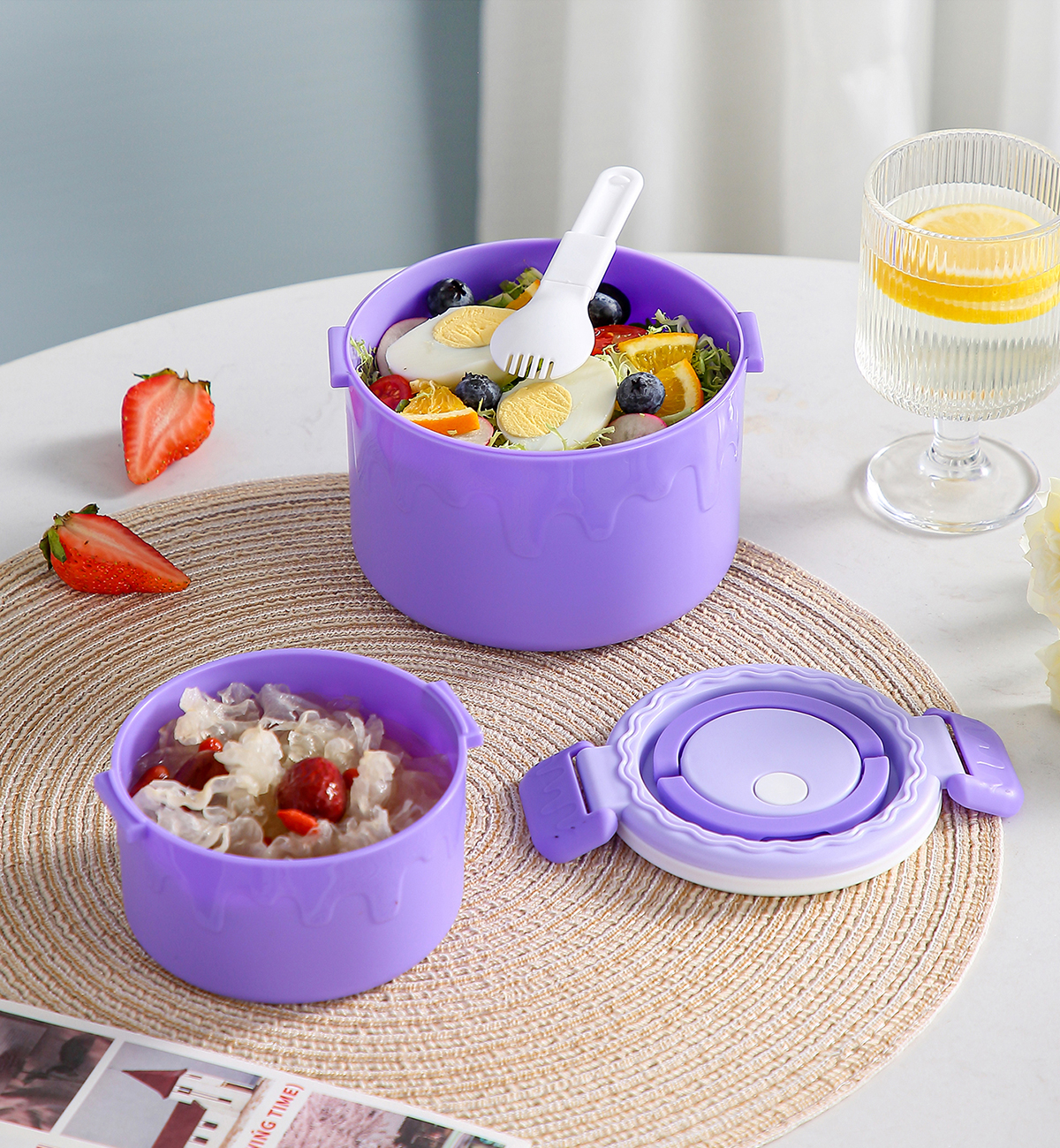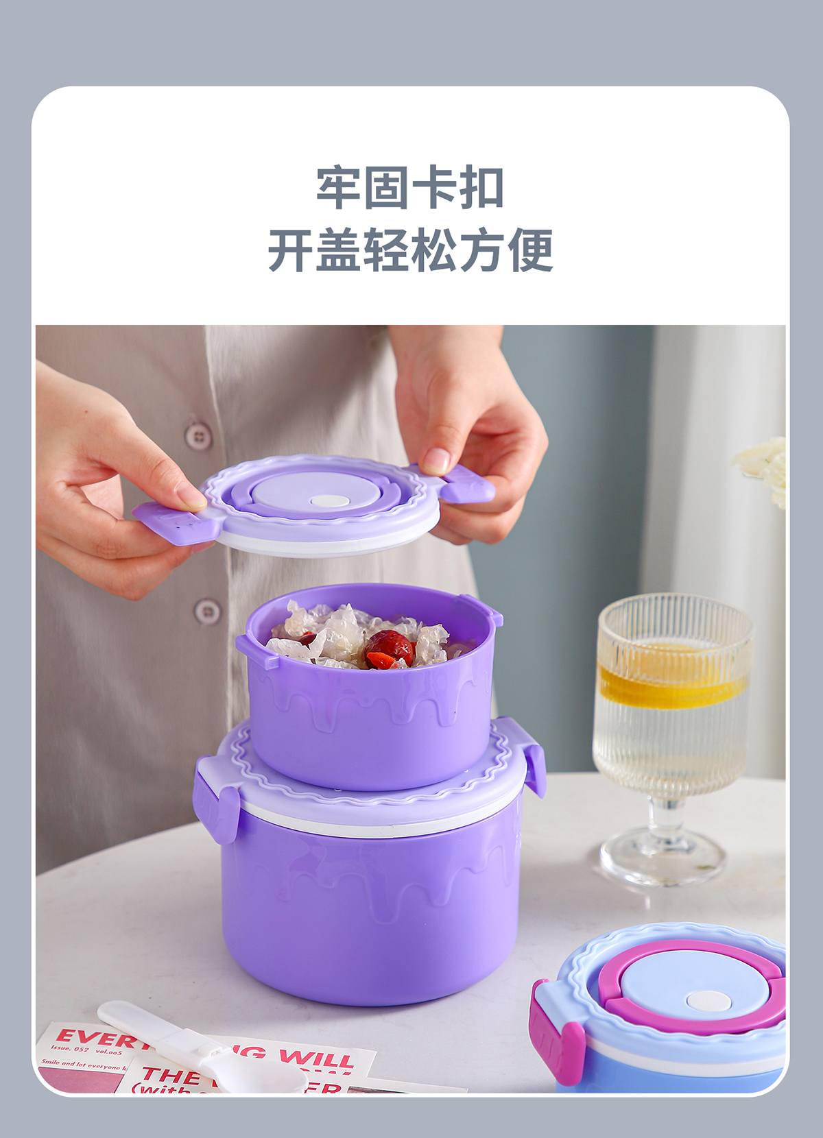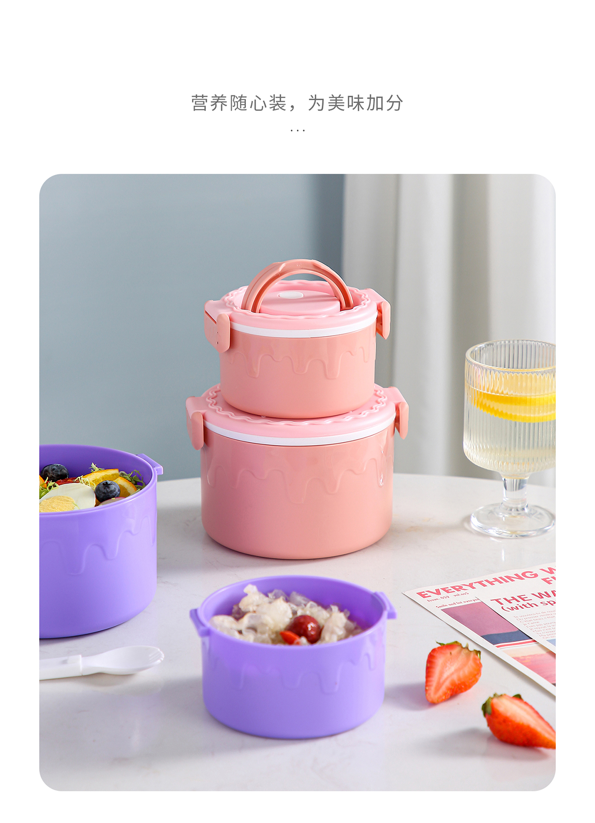 蛋糕圓形塑料雙層飯盒1000ml+380ml