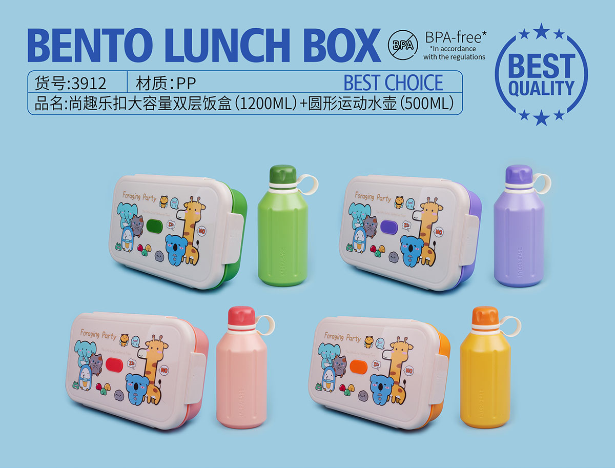 尚趣樂扣大容量雙層飯盒(1200ml)+圓形運(yùn)動(dòng)水壺(500ml)