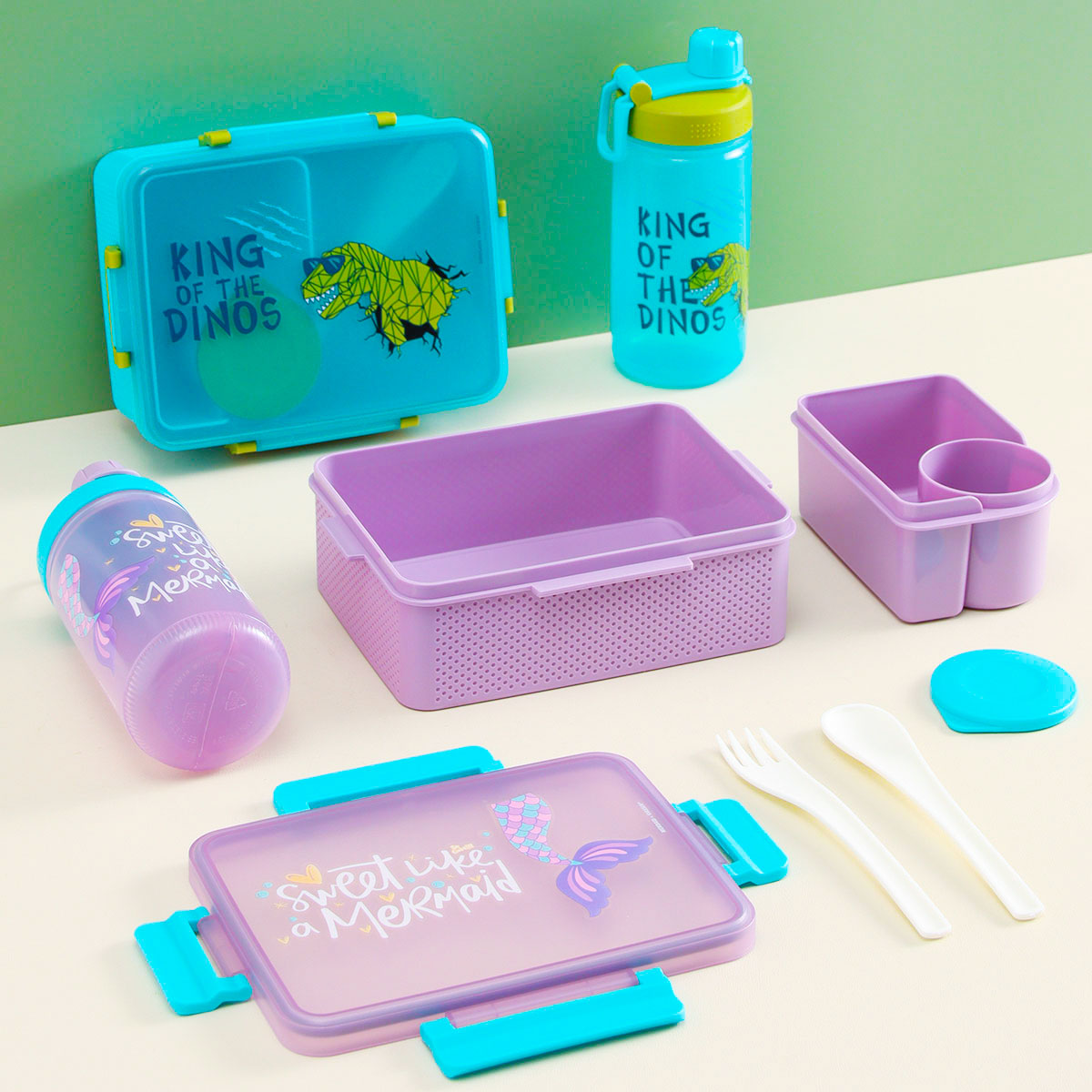 童彩3格飯盒+運(yùn)動(dòng)水壺套裝(含內(nèi)盒1500ml+500ml)