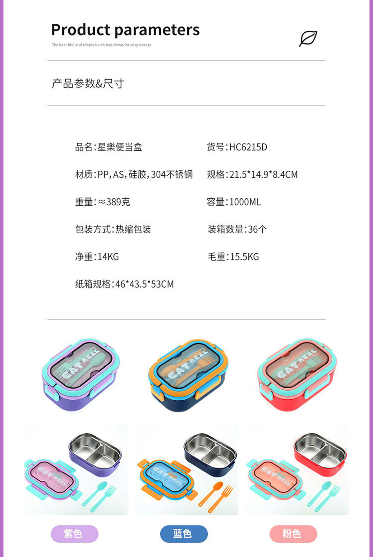 SWY-HC6215A(三格PP款):215*149*71mm/1000ml