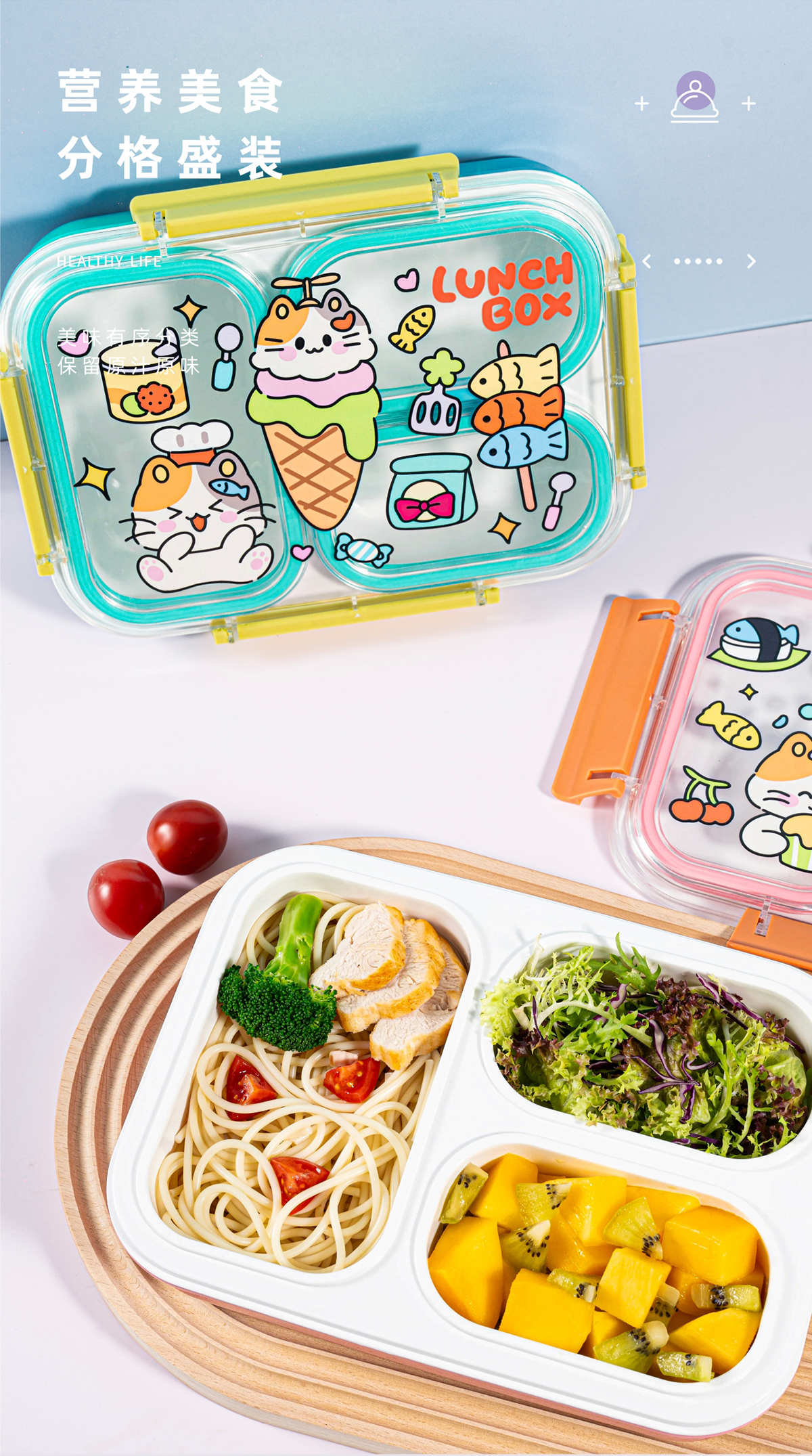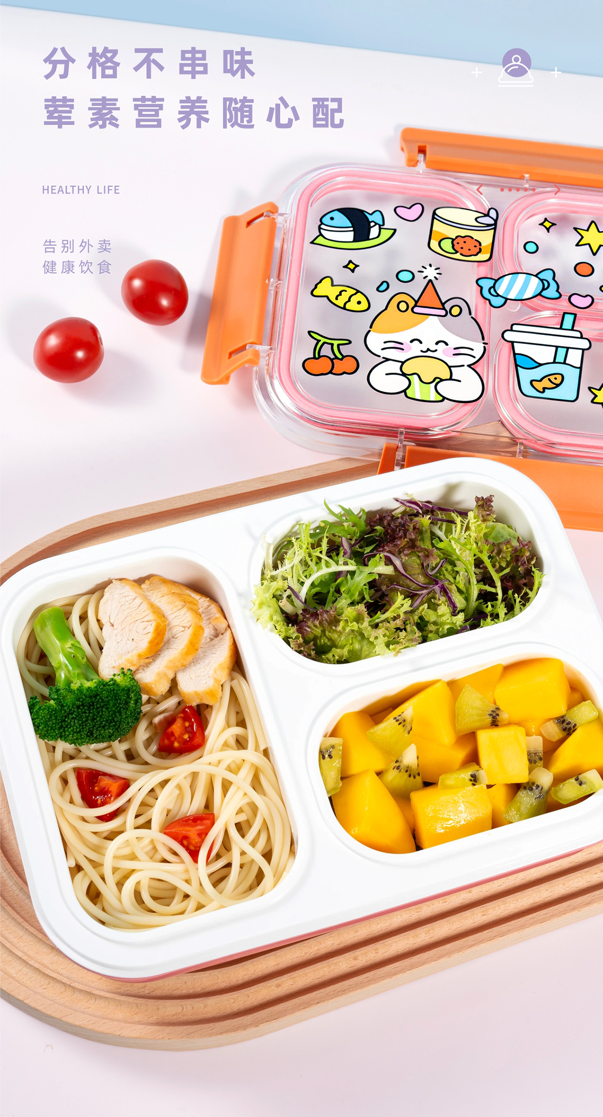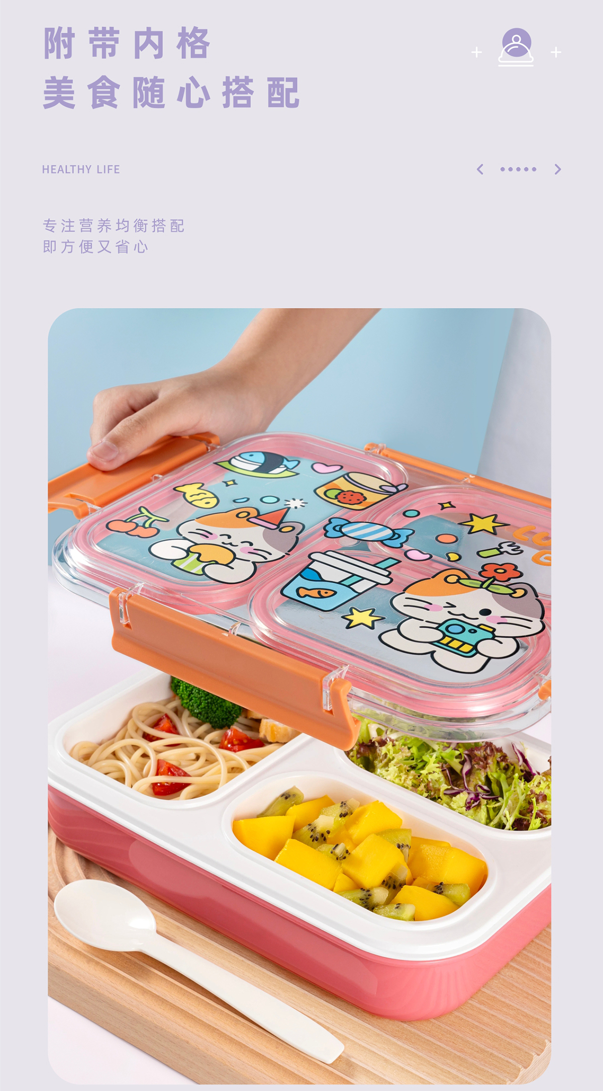 趣繪分格餐盒(帶餐具)