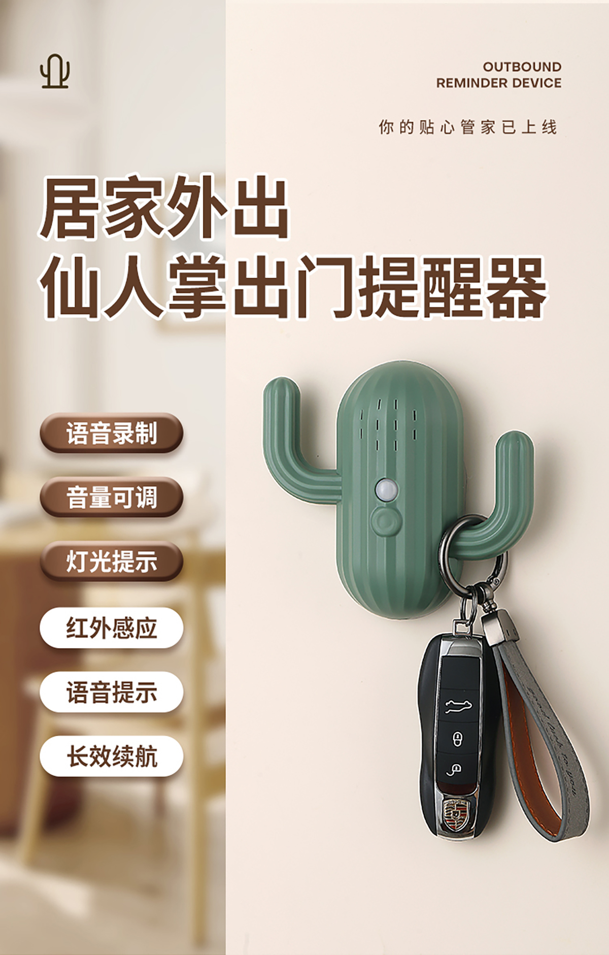 仙人掌出門提醒器